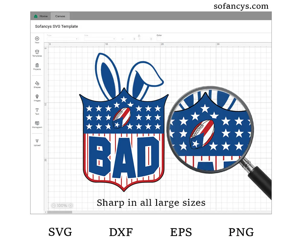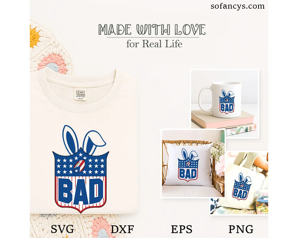 Sofancys proudly introduces Bad Bunny Football Shield SVG – American Bunny Sports Logo, a bold and playful sports-inspired design. First, the shield shape creates a strong football identity. Moreover, the bunny ears add a unique, fun twist to classic American sports styling. In addition, the clean vector lines ensure easy cutting and smooth printing. Therefore, this design works perfectly for shirts, decals, hats, and fan gear projects. Overall, it delivers a powerful yet creative sports logo look.