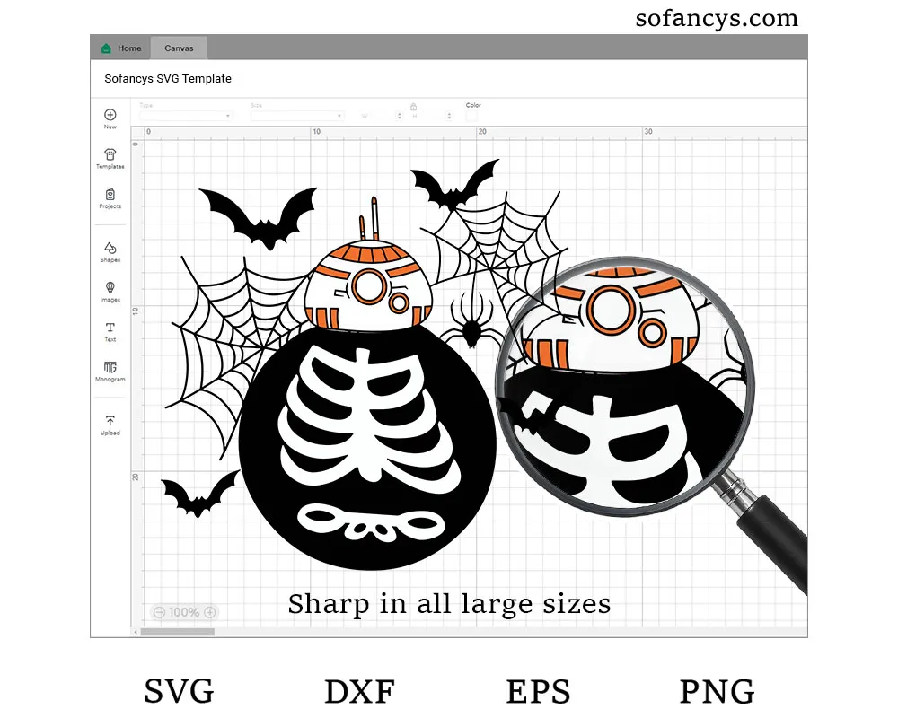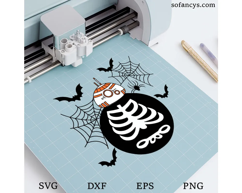 Sofancys introduces the creative BB-8 Skeleton SVG – Star Wars Halloween Spooky Design, blending Star Wars charm with a spooky Halloween twist. This design showcases the beloved droid BB-8 decorated with a skeleton ribcage, surrounded by bats, cobwebs, and spiders for a haunting effect. Ideal for Cricut and Silhouette projects, the BB-8 Skeleton SVG works perfectly on shirts, mugs, stickers, or Halloween party décor. With its fun mix of sci-fi and festive creepiness, this design brings a unique galactic vibe to all your seasonal crafting adventures.