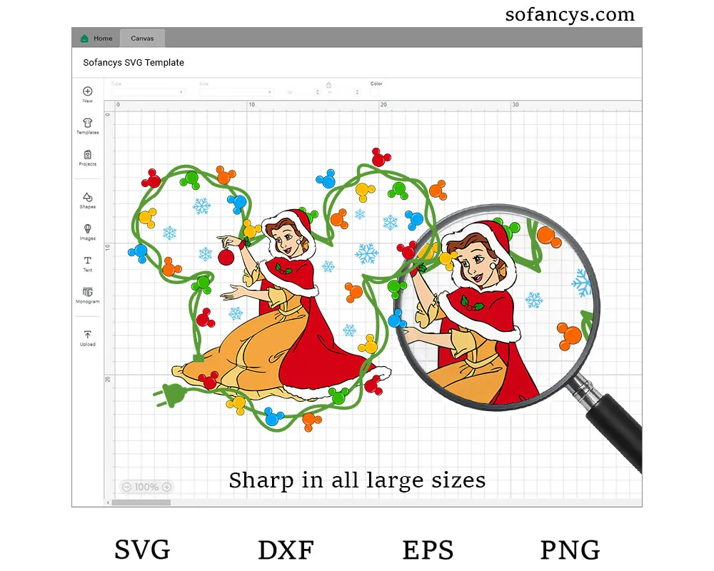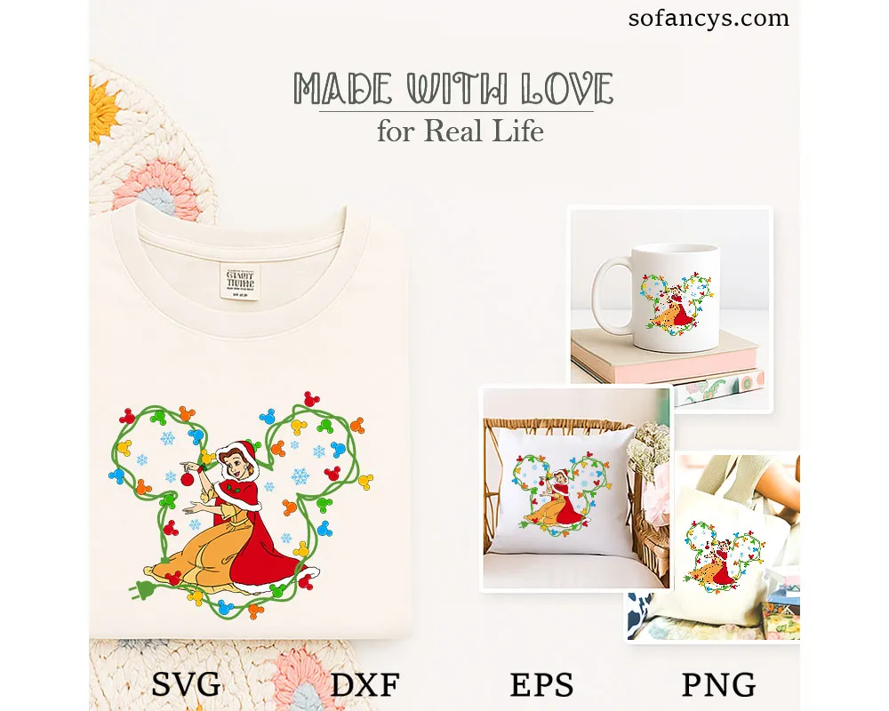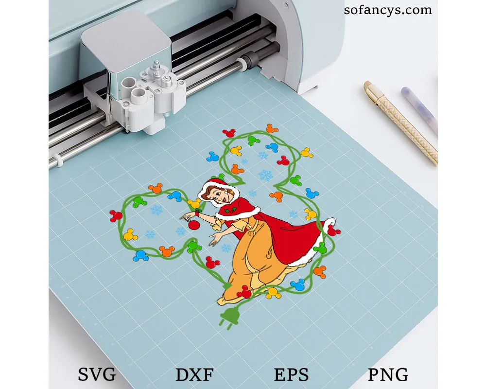 Belle Christmas Lights SVG – Disney Mickey Ears Xmas Design, SVG DXF EPS PNG Files