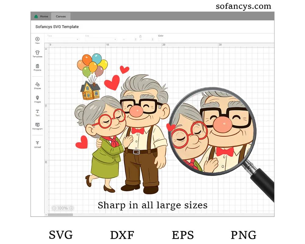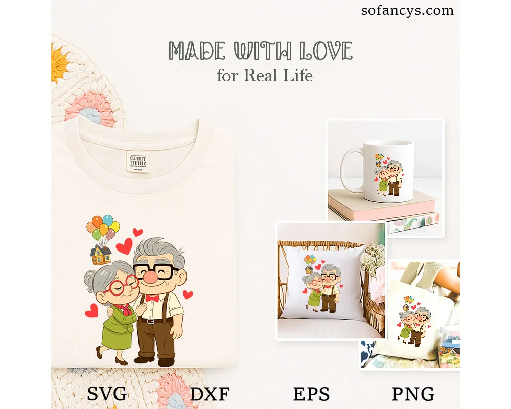 Sofancys proudly presents a heartwarming illustration inspired by true love and timeless memories. The design captures the sweet bond between Carl and Ellie, sharing a gentle embrace filled with warmth, joy, and lifelong devotion. With soft colors, adorable expressions, and charming details, Carl And Ellie Love SVG – Up Movie Couple Valentine Design is perfect for Valentine’s Day projects, anniversary gifts, wedding décor, or romantic crafts. Ideal for SVG cutting, printing, and DIY creations, this artwork celebrates love that grows stronger through every stage of life.