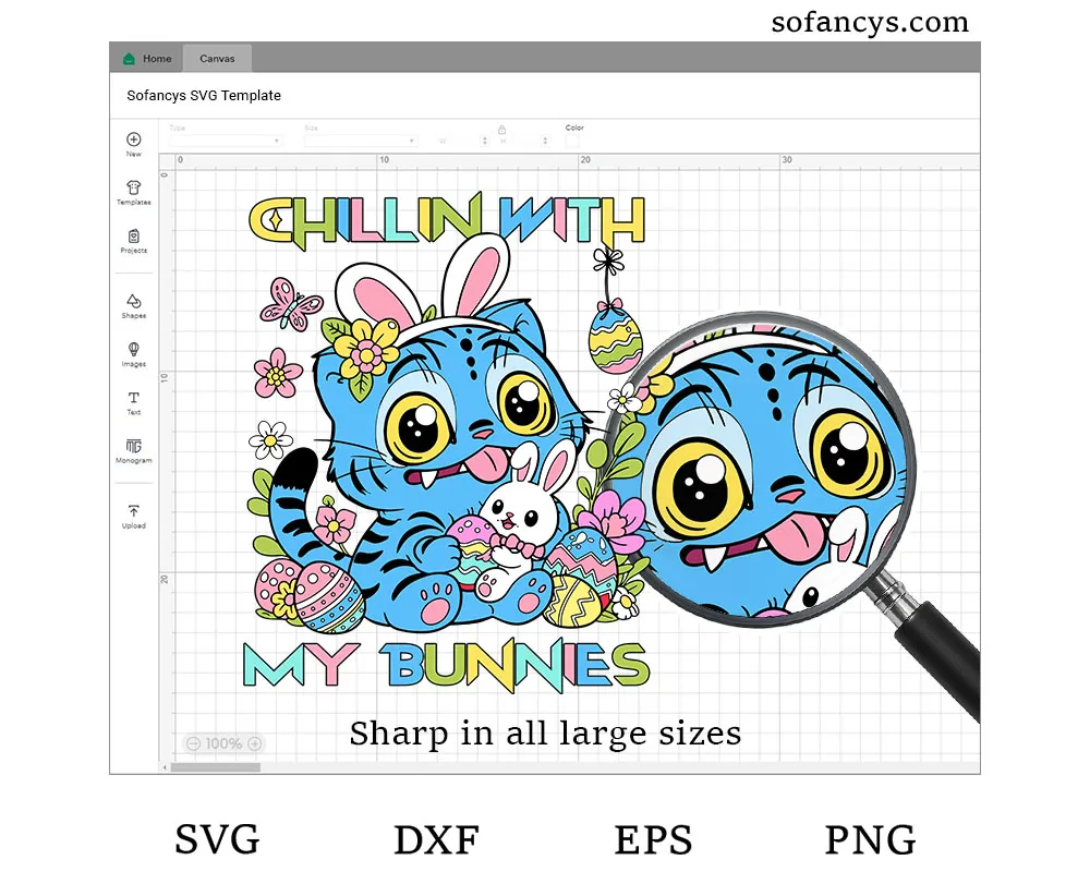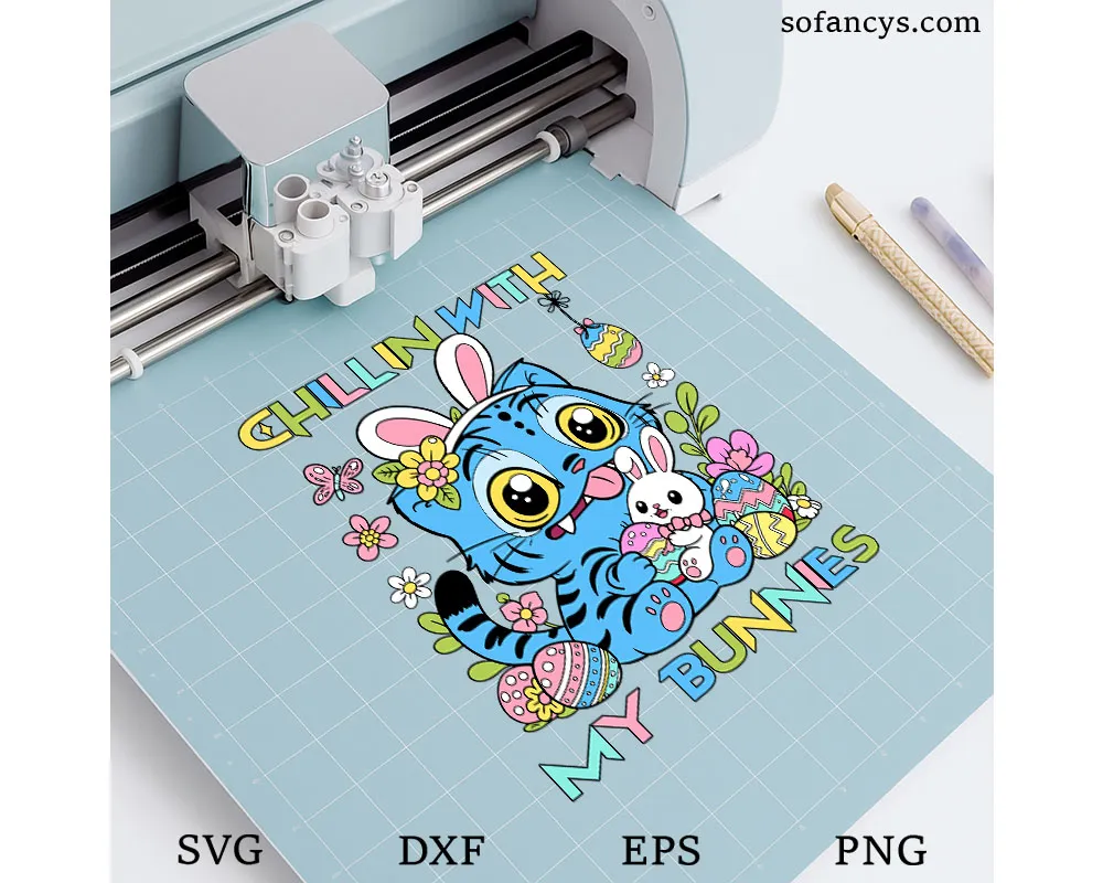 Sofancys proudly presents the Chillin With My Bunnies SVG – Derpy Tiger Bunny Easter Design, a cute and playful illustration perfect for Easter celebrations. The design features an adorable derpy tiger wearing bunny ears while cuddling a sweet little bunny, surrounded by colorful Easter eggs, flowers, and spring decorations. Bright pastel colors and cheerful details create a fun and festive holiday vibe. This charming design is perfect for Cricut projects, Easter shirts, tote bags, stickers, and seasonal crafts, bringing joyful springtime energy and adorable Easter spirit to your creative projects.