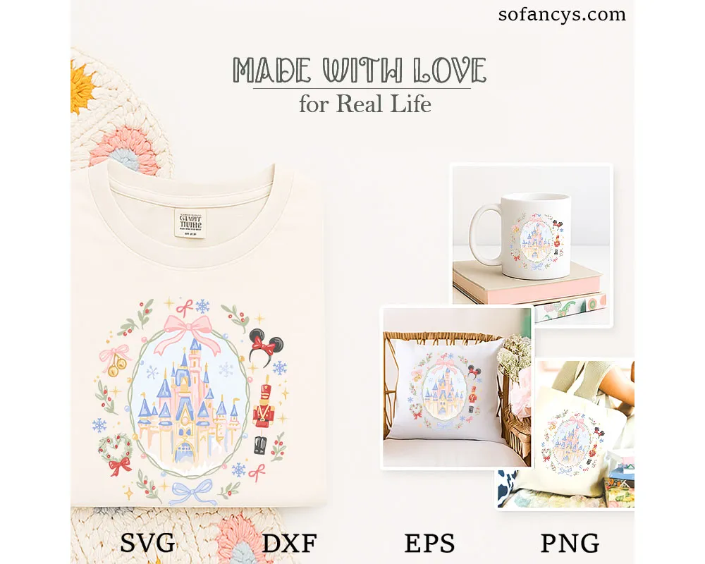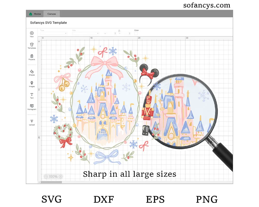 Disney Coquette Christmas SVG – Pastel Castle Design, SVG DXF EPS PNG Files