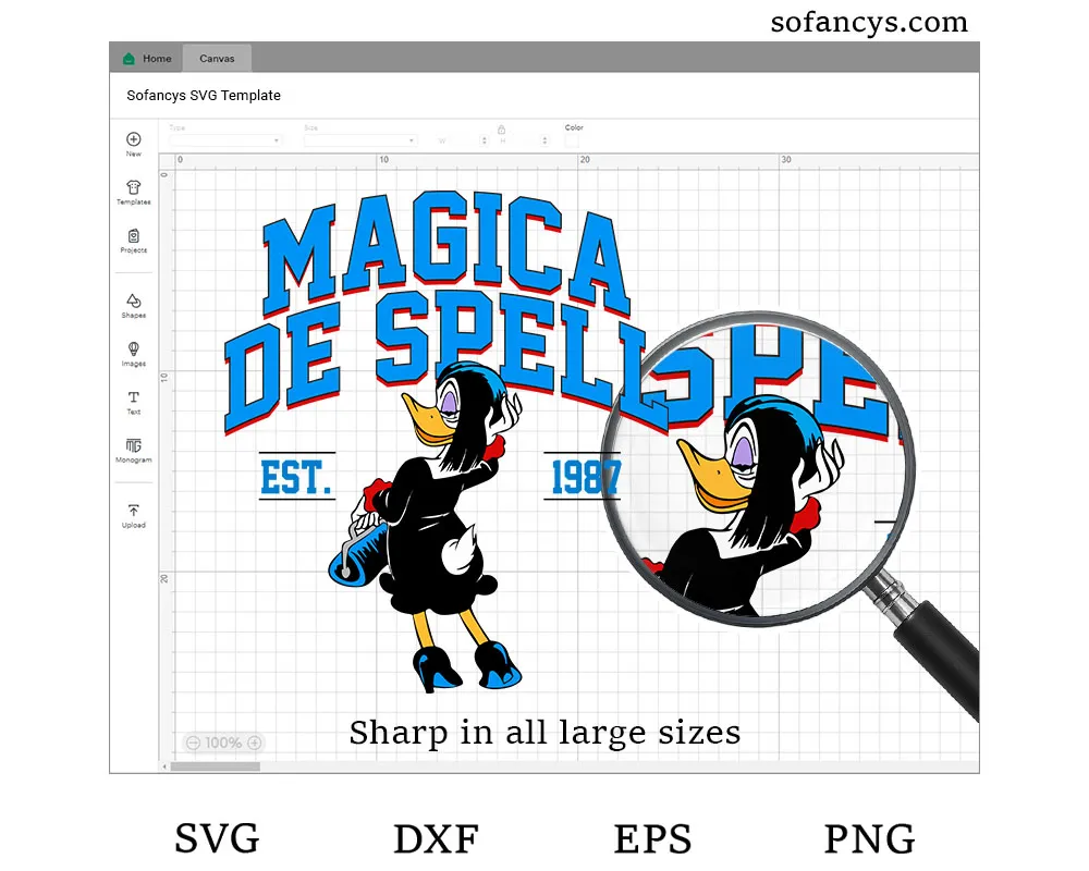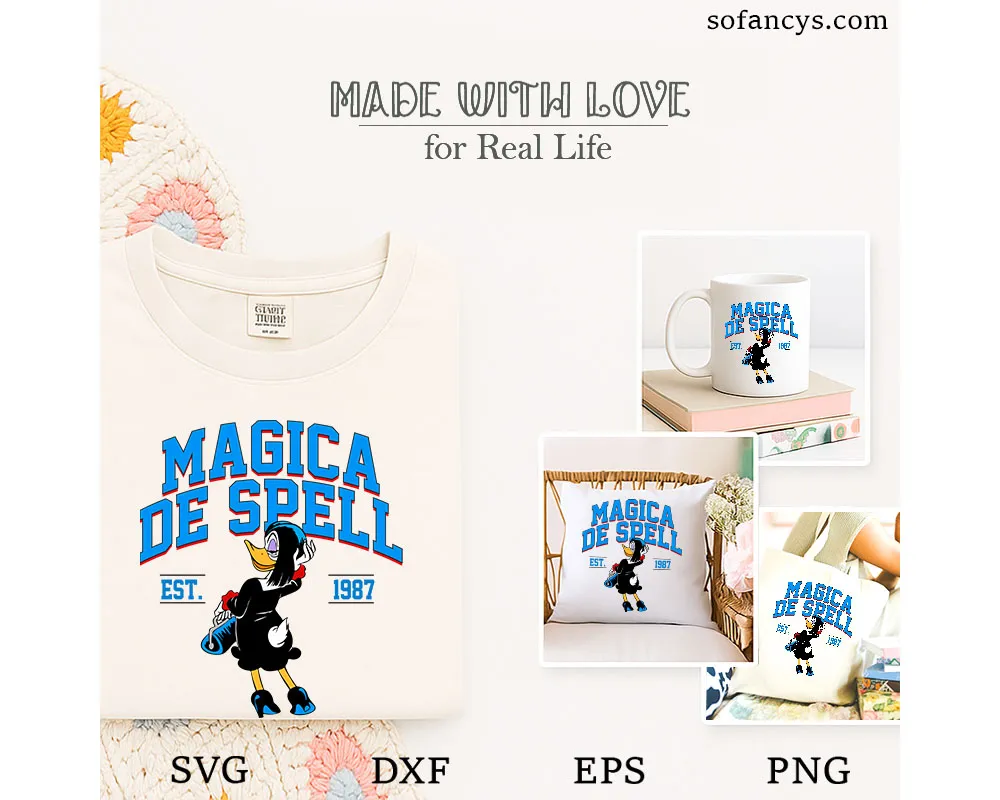 Sofancys introduces the bold and stylish Disney Magica De Spell SVG – Retro DuckTales Cartoon Design, featuring the iconic witch from DuckTales in her classic black dress and heels. This Retro DuckTales Cartoon Design captures Magica’s confident and mischievous personality, perfect for vintage-inspired crafts. Ideal for shirts, mugs, prints, and more, it’s compatible with Cricut and Silhouette. Bring a touch of Disney magic and nostalgia to your next creative project with this charming SVG illustration.