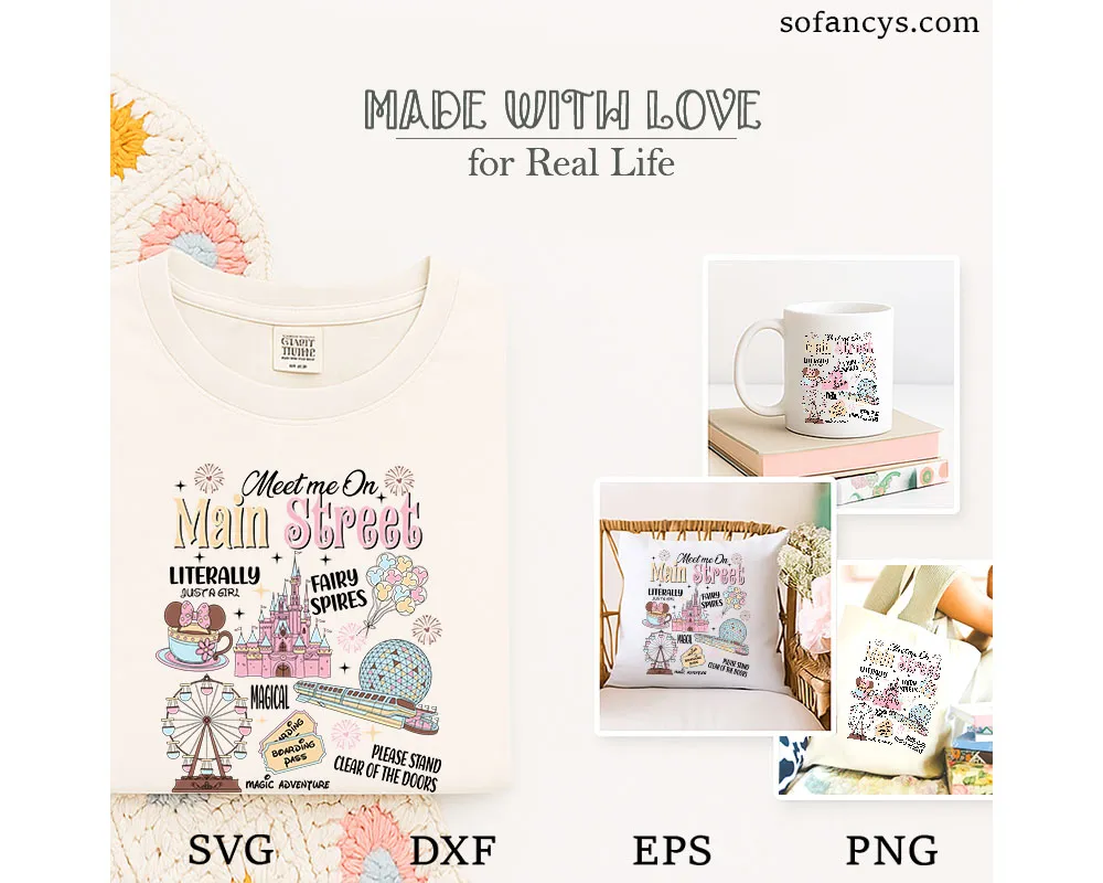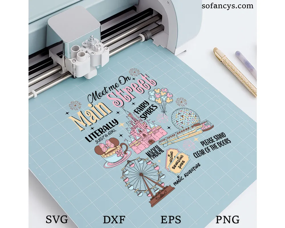 Sofancys proudly presents Disney Main Street Magic SVG – Girl Trip Castle Design, a dreamy and feminine artwork inspired by magical theme park adventures. This charming design features a pastel castle, fireworks, balloons, monorail, and iconic Main Street elements that capture the joy of a girls’ getaway. Soft pink tones and playful typography make it perfect for vacation shirts, matching group outfits, and travel keepsakes. The high-quality file includes SVG, DXF, EPS, and PNG formats, ideal for Cricut, Silhouette, and custom DIY crafts.