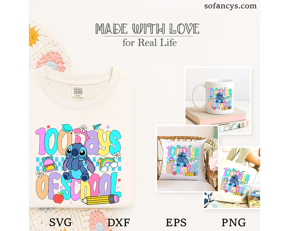 Sofancys proudly presents Disney Stitch 100th Day Of School SVG – Cute Kids Design, a bright and playful back-to-school artwork perfect for celebrating 100 days of learning. This adorable design features Stitch surrounded by colorful numbers, school icons, and cheerful details that kids will love. Ideal for Cricut and Silhouette projects, the file includes SVG, DXF, EPS, and PNG formats for easy crafting. Create fun shirts, classroom outfits, party decorations, and memorable school keepsakes with a high-quality, scalable design that prints beautifully at any size.