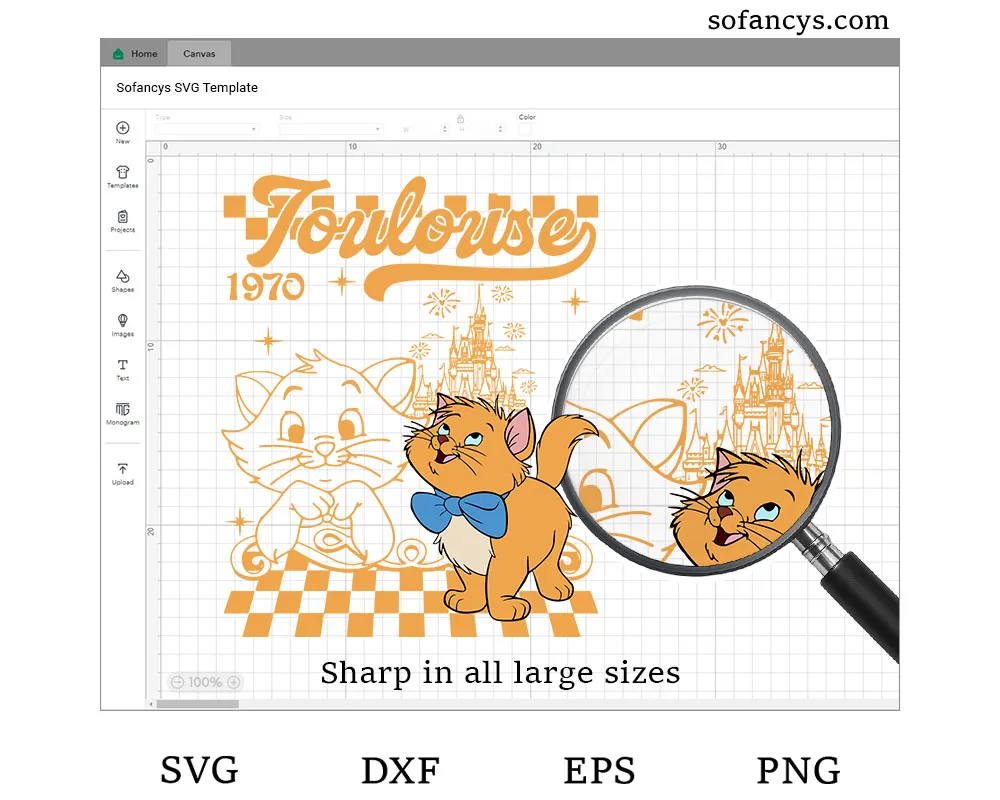 Please note that you’re just purchasing a digital design titled “Disney Toulouse 1970 Cat Digital File”. In other words, this is not a physical product that will be shipped to your home. All files will be delivered digitally for instant download.