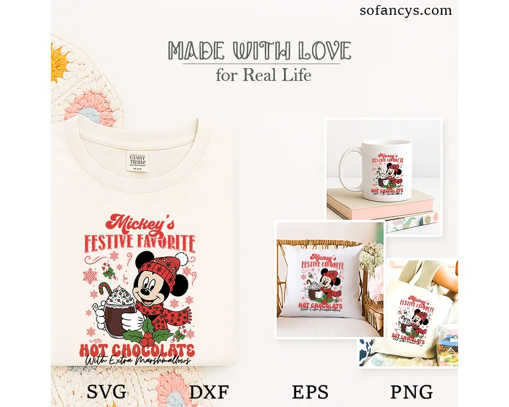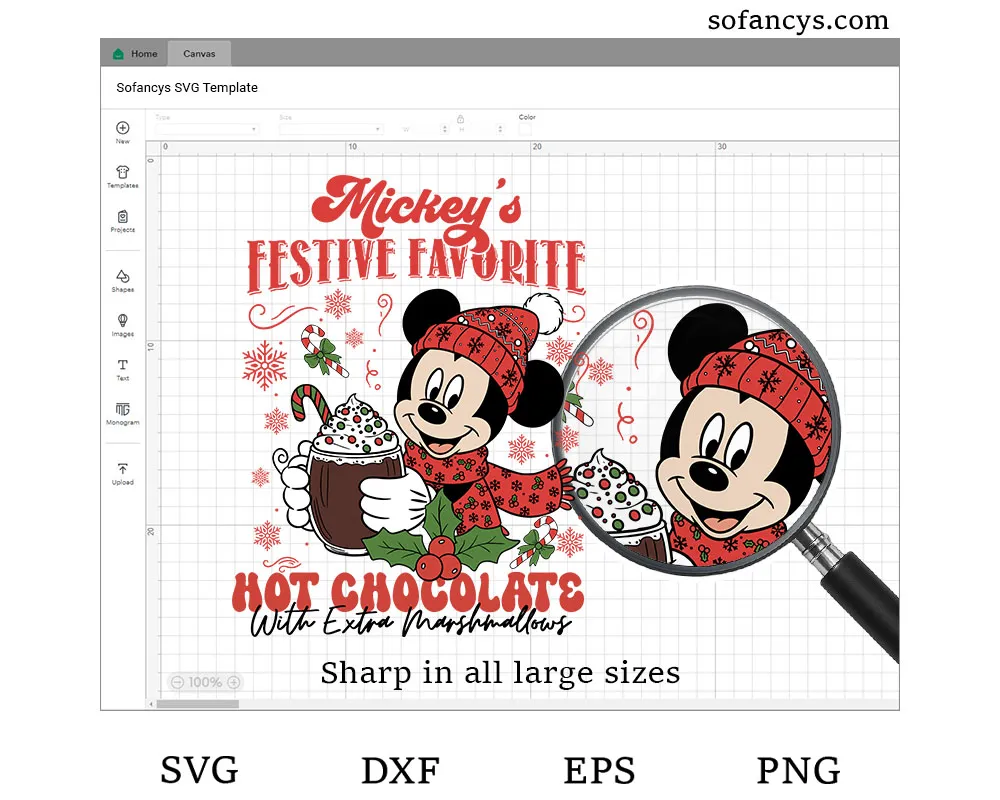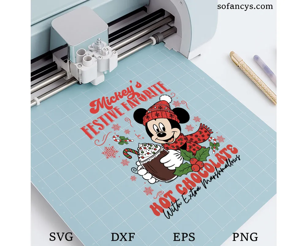 Festive Mickey Hot Chocolate SVG – Disney Christmas Holiday Art