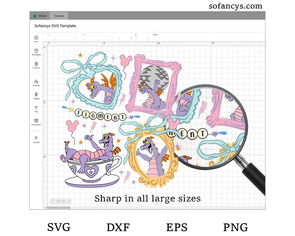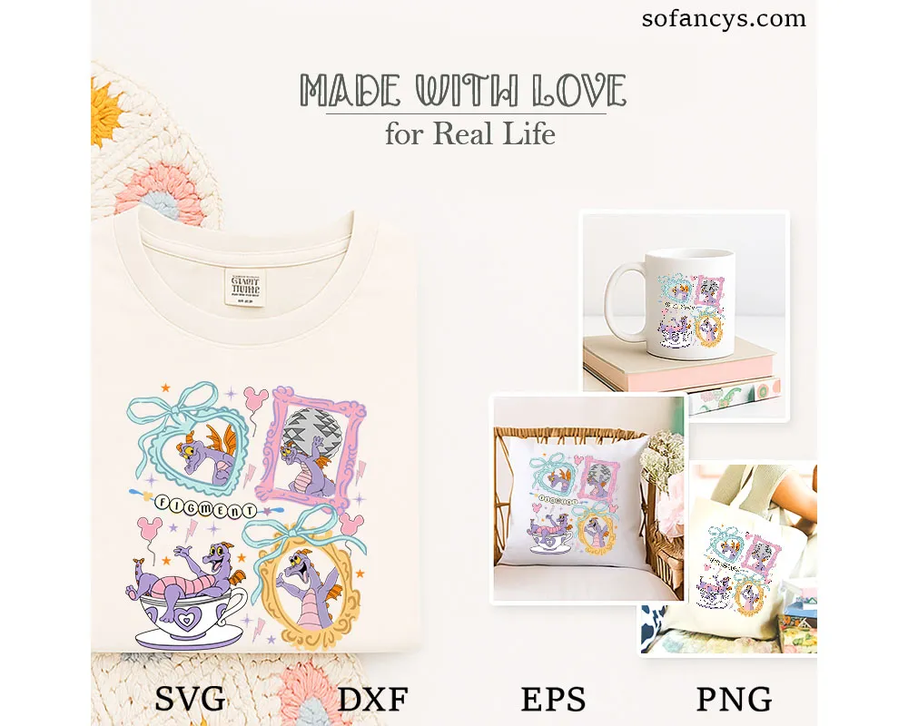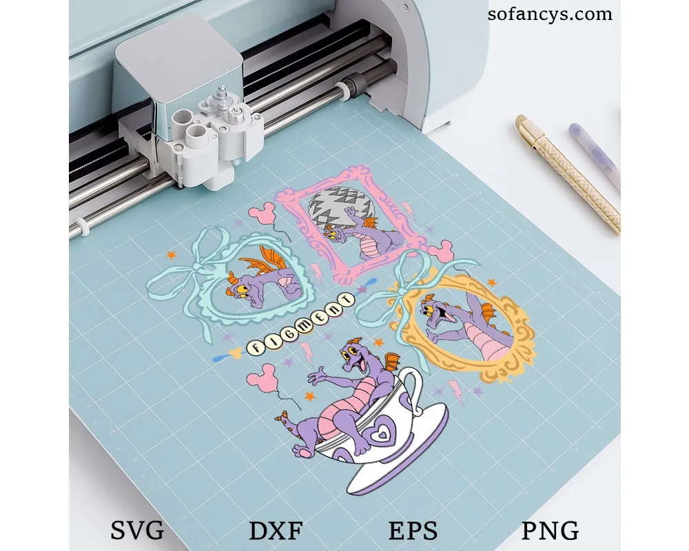Sofancys presents a whimsical and nostalgic illustration inspired by classic theme park charm and vintage cartoon art. This design features a playful purple dragon framed in coquette-style bows, ornate borders, and pastel accents that evoke timeless fantasy fun. The cute poses and retro details make it perfect for shirts, stickers, scrapbooks, and creative crafts. Ideal for fans of imaginative characters and park memories, Figment Coquette Dragon SVG – Vintage Disney Theme Park Art adds magical personality, sweetness, and collectible-style flair to any project.