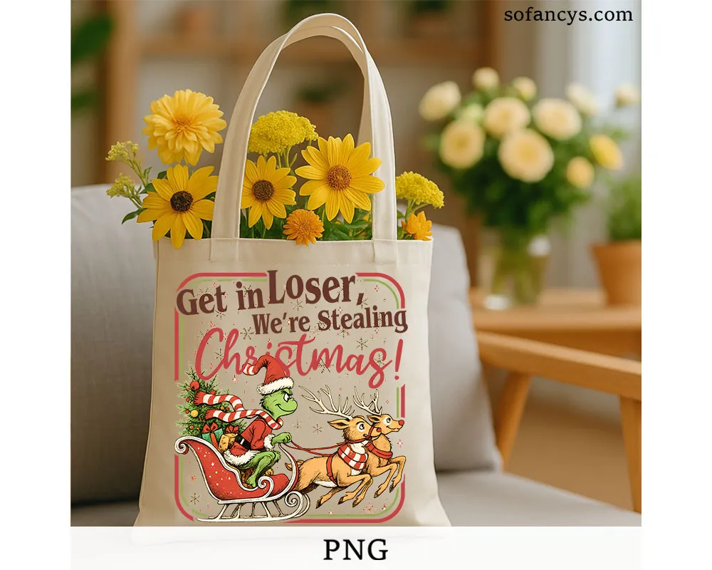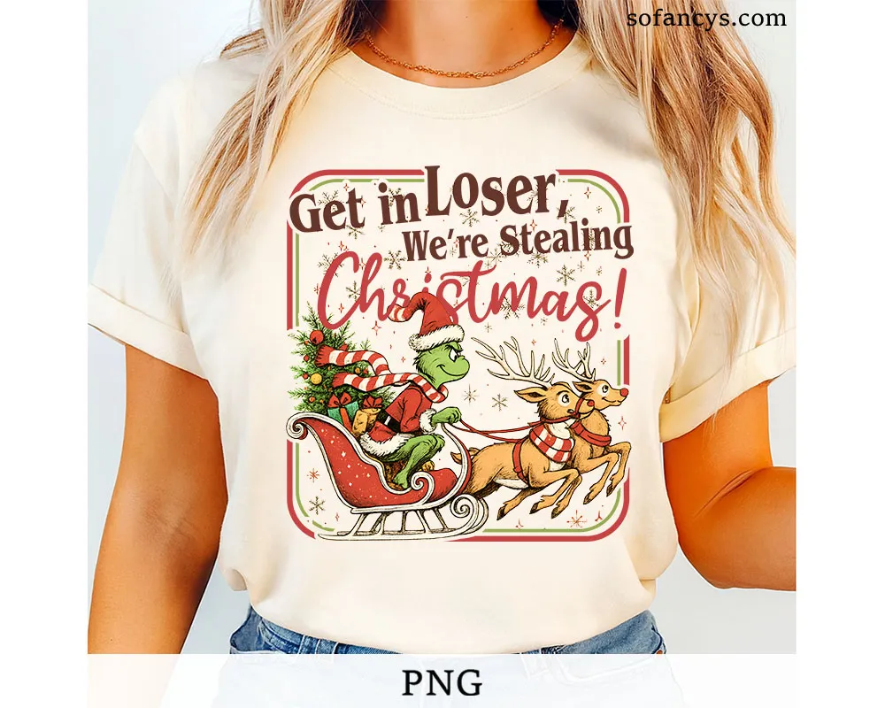 Get In Loser Christmas PNG – Grinch Stealing Christmas Design