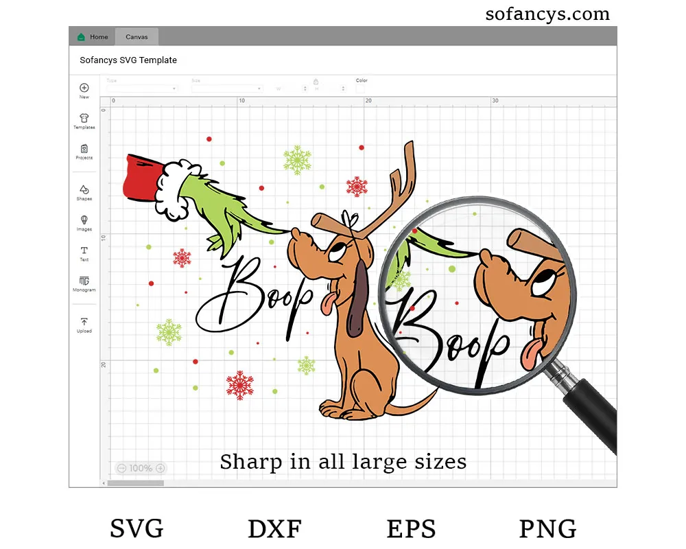 Please note that you’re just purchasing a digital design titled “Grinch Boop Dog Digital File”. In other words, this is not a physical product that will be shipped to your home. All files will be delivered digitally for instant download.