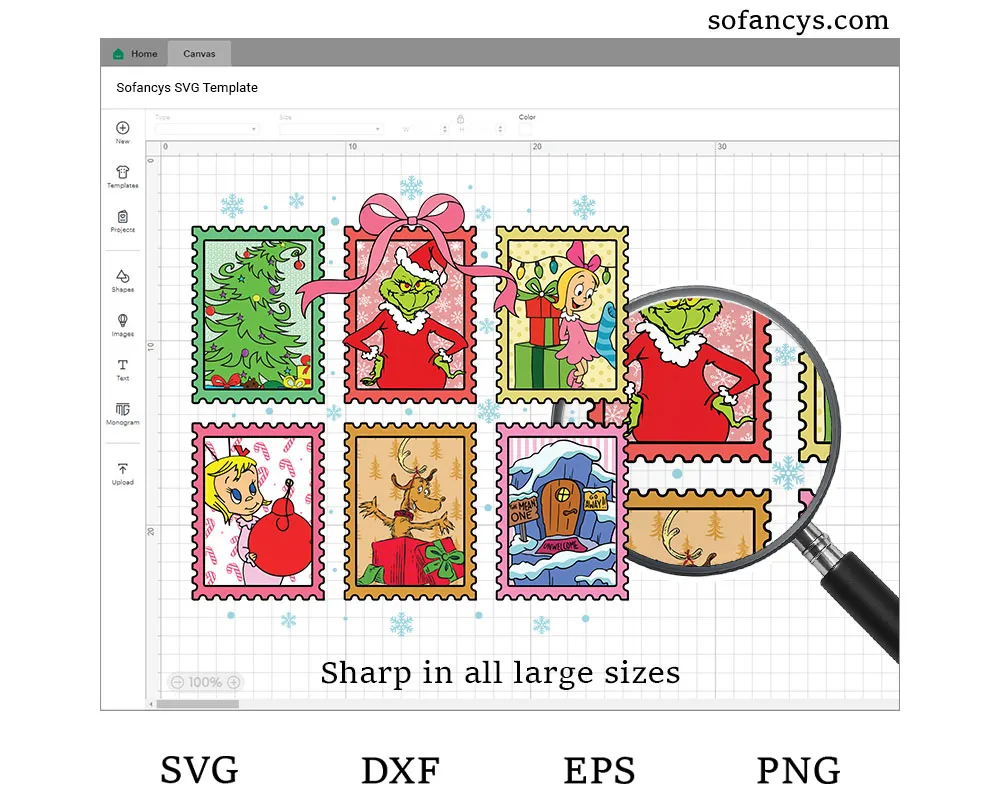 Please note that you’re just purchasing a digital design titled “Grinch Christmas Stamps Digital File”. In other words, this is not a physical product that will be shipped to your home. All files will be delivered digitally for instant download.