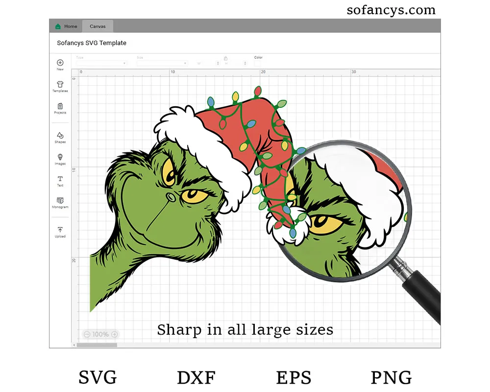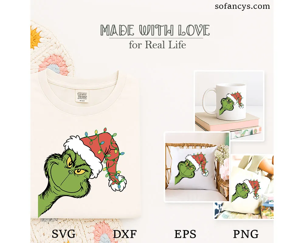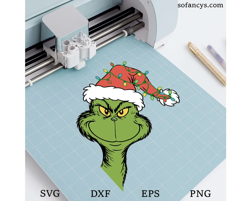 Grinch Santa Lights SVG – Cute Whoville Christmas Character Art