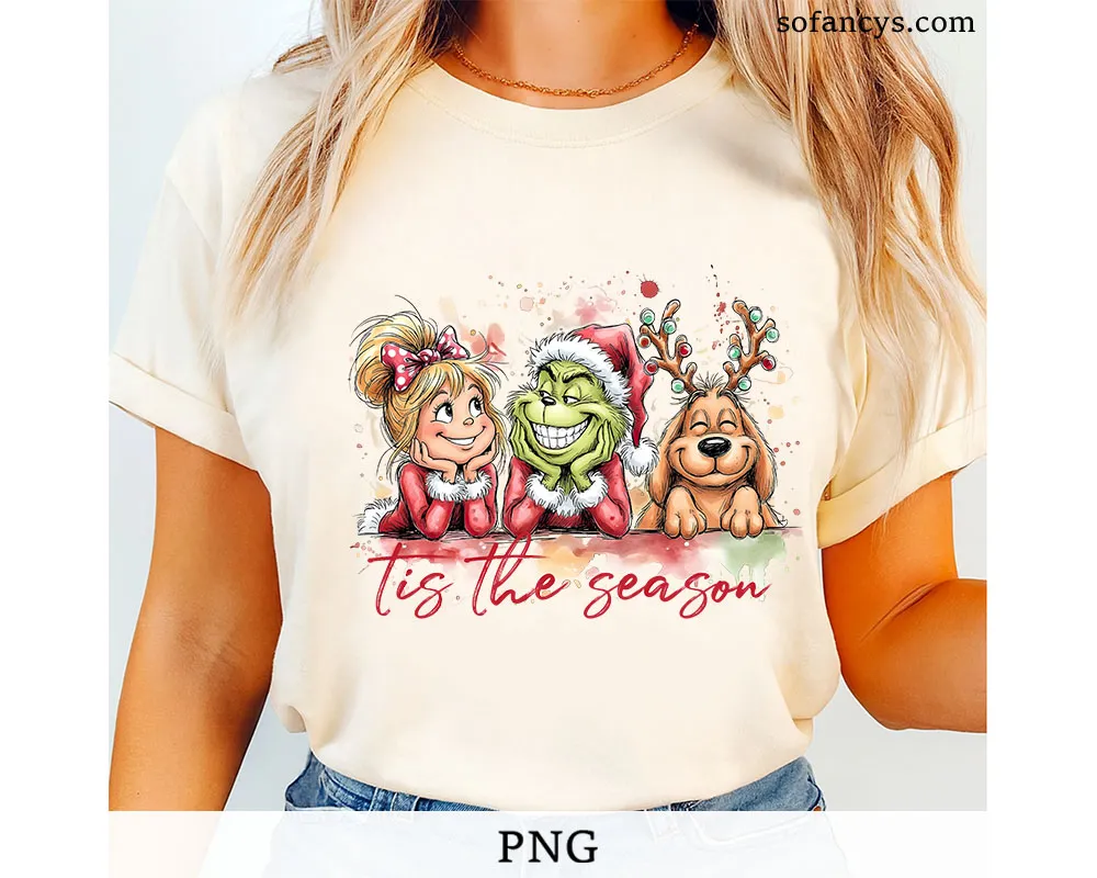 Sofancys proudly presents a heartwarming holiday illustration featuring cheerful Christmas friends gathered in a cozy seasonal moment. This charming artwork captures playful expressions, festive outfits, and joyful winter vibes that instantly spread Christmas spirit. Perfect for sublimation projects, holiday shirts, mugs, wall art, or seasonal gifts, this design blends cute character art with warm holiday emotions. The detailed watercolor-style illustration makes Grinch Tis The Season PNG – Cute Christmas Friends Art an ideal choice for festive crafts and creative Christmas collections.