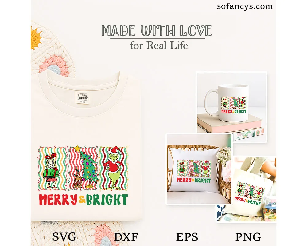 Grinchmas Merry & Bright SVG – Retro Coquette Christmas Art
