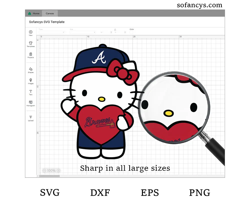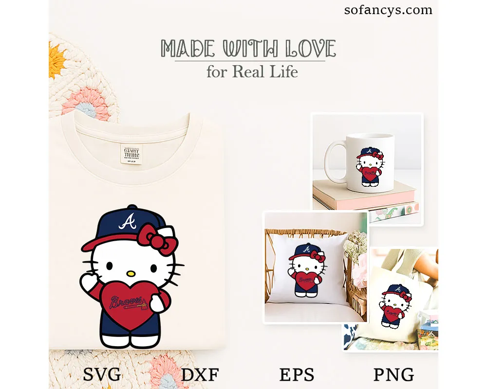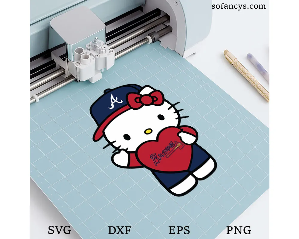Hello Kitty Braves SVG – Cute Baseball Fan Cartoon Design