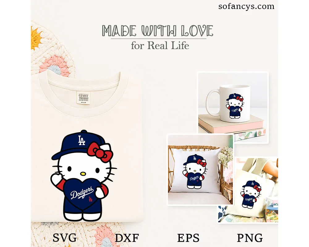 Hello Kitty Dodgers SVG – Cute Baseball Fan Cartoon Design, SVG DXF EPS PNG Files
