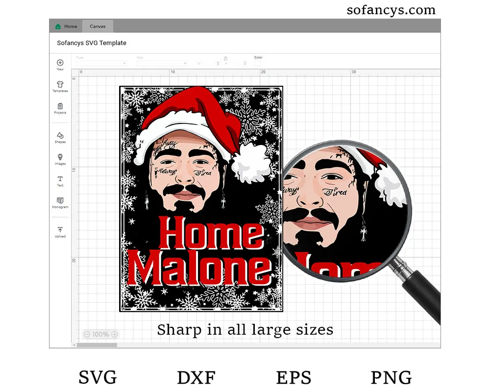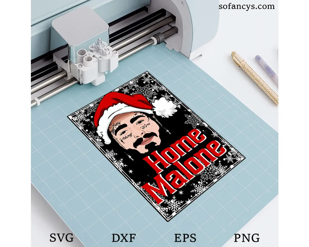 Sofancys proudly presents a playful and festive holiday artwork inspired by pop culture humor. Home Malone Christmas SVG – Home Alone Parody Holiday File features a bold portrait style with a Santa hat twist, blending classic Christmas vibes and parody fun. This design is perfect for holiday shirts, sweatshirts, mugs, posters, and DIY crafts. Clean lines, strong contrast, and a modern graphic look make it ideal for cutting machines, sublimation, and creative seasonal projects.