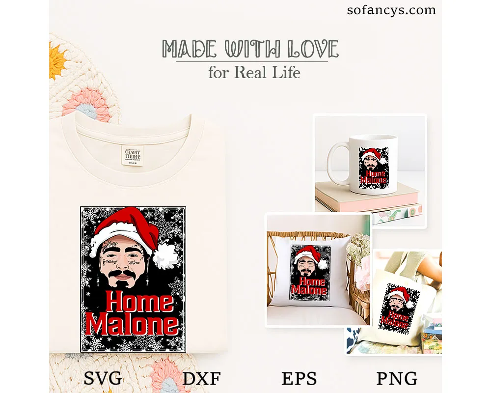 Please note that you’re just purchasing a digital design titled “Home Malone Christmas Digital File”. In other words, this is not a physical product that will be shipped to your home. All files will be delivered digitally for instant download.