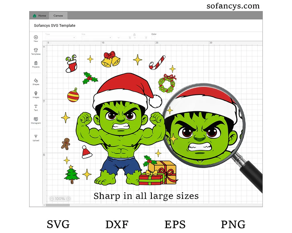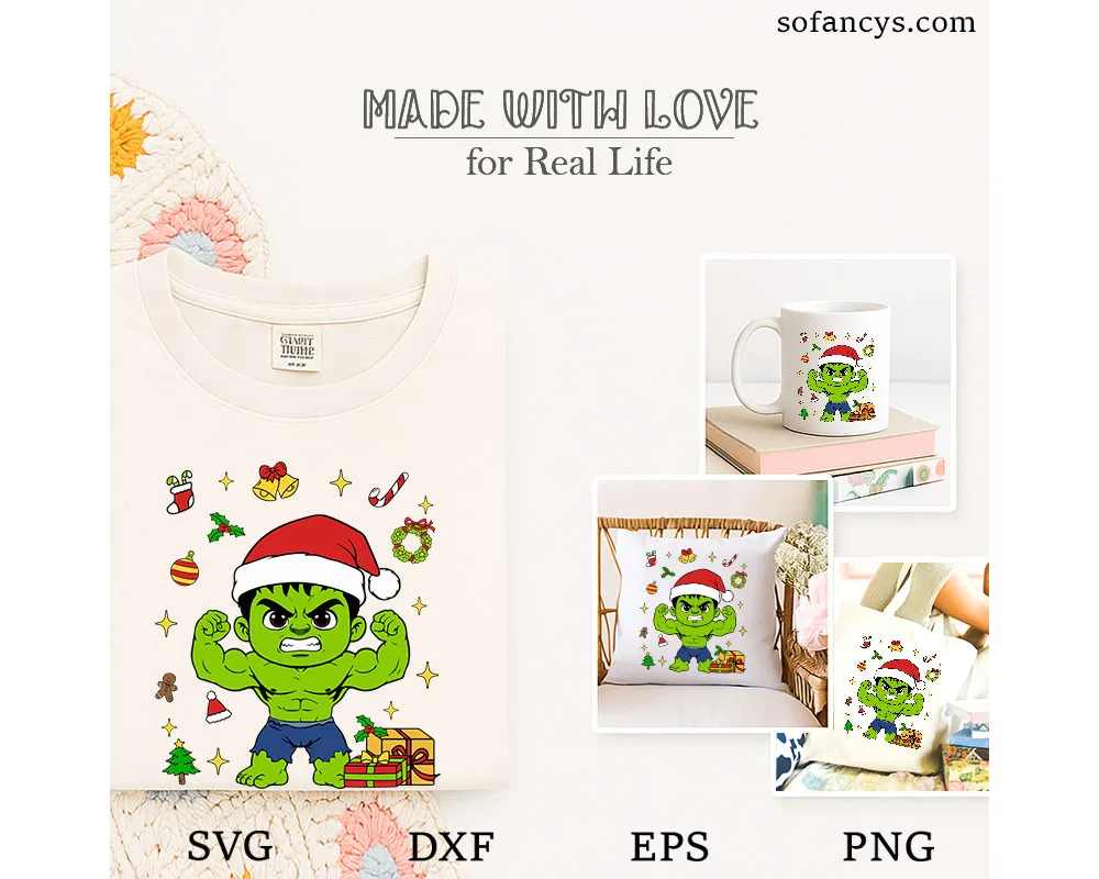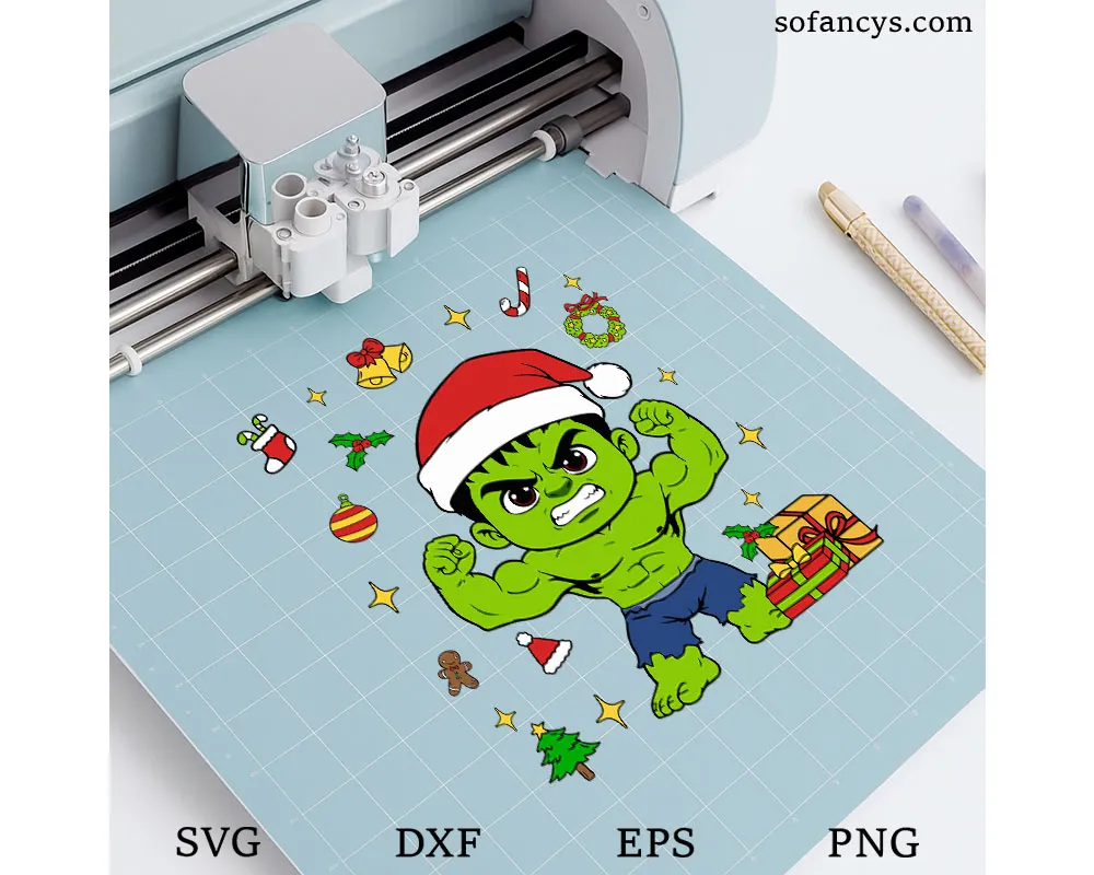 Sofancys brings festive superhero fun with the Hulk Christmas SVG – Superhero Santa Hat Holiday Design. This playful artwork features Hulk in a powerful pose, wearing a Santa hat and surrounded by classic Christmas icons like gifts, ornaments, candy canes, and sparkles. The bold colors and cute cartoon style make it perfect for holiday crafts, T-shirts, mugs, stickers, decals, and DIY Christmas projects. Ideal for fans who love mixing superhero energy with cheerful Christmas vibes.