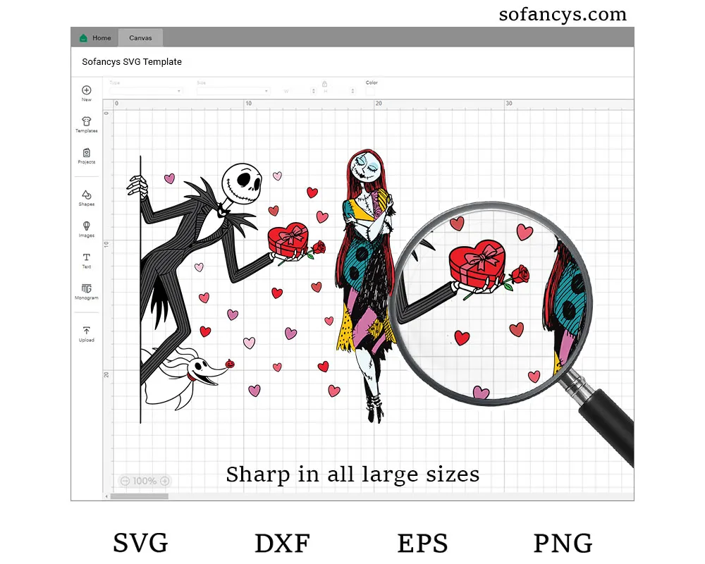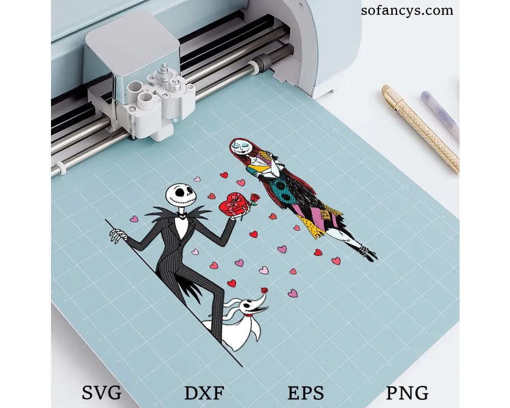 Jack And Sally Valentine SVG – Gothic Love Cartoon Design, SVG DXF EPS PNG Files