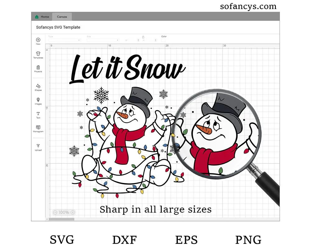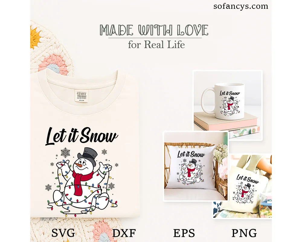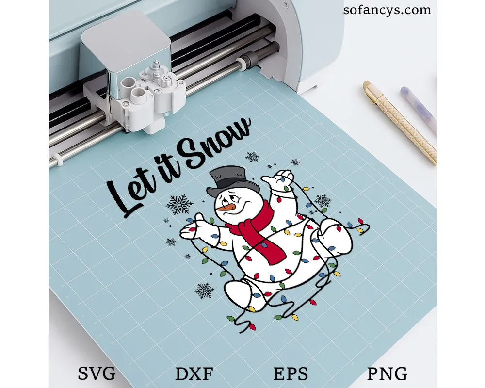 Let It Snow Snowman SVG – Christmas Lights Winter Design, SVG DXF EPS PNG Files
