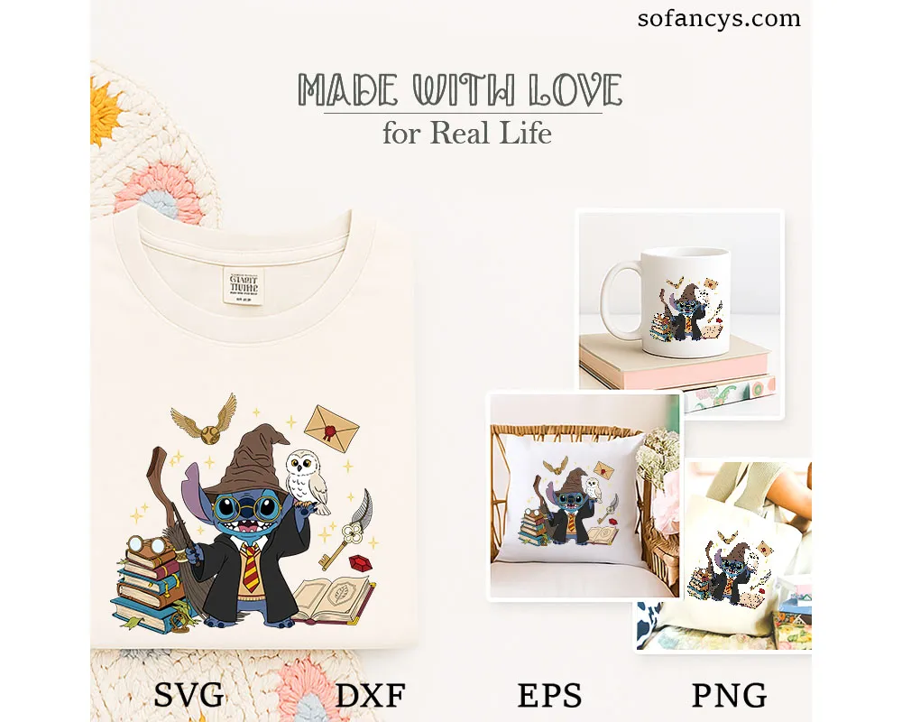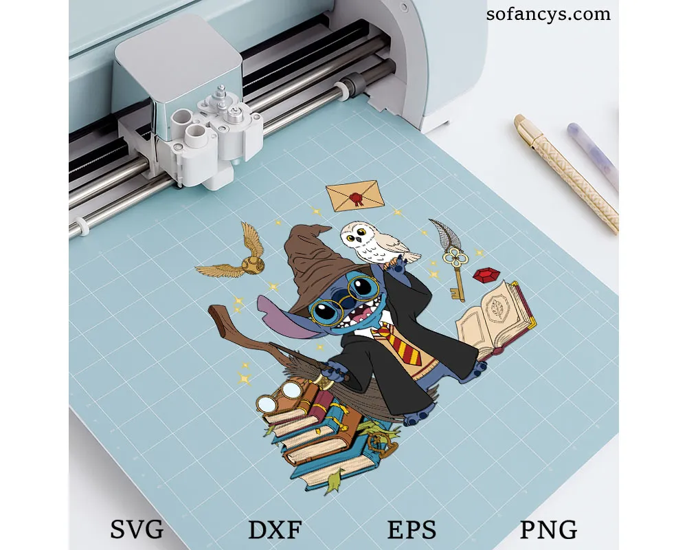 Sofancys presents the Magical Stitch Hogwarts SVG – Wizarding World Disney Art, a whimsical crossover design featuring Stitch dressed as a wizard with iconic magical items — broomstick, owl, books, and sorting hat. Surrounded by stars, keys, and enchanted details, this artwork perfectly blends humor and fantasy. Ideal for fans who love creative mashups, this SVG is great for shirts, mugs, and decor using Cricut or Silhouette. Bring the spellbinding charm of Stitch’s magic world into your next crafting project!