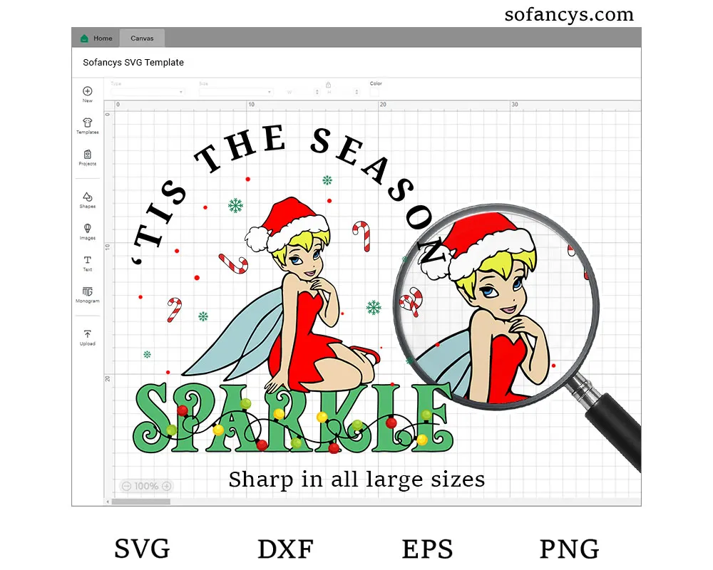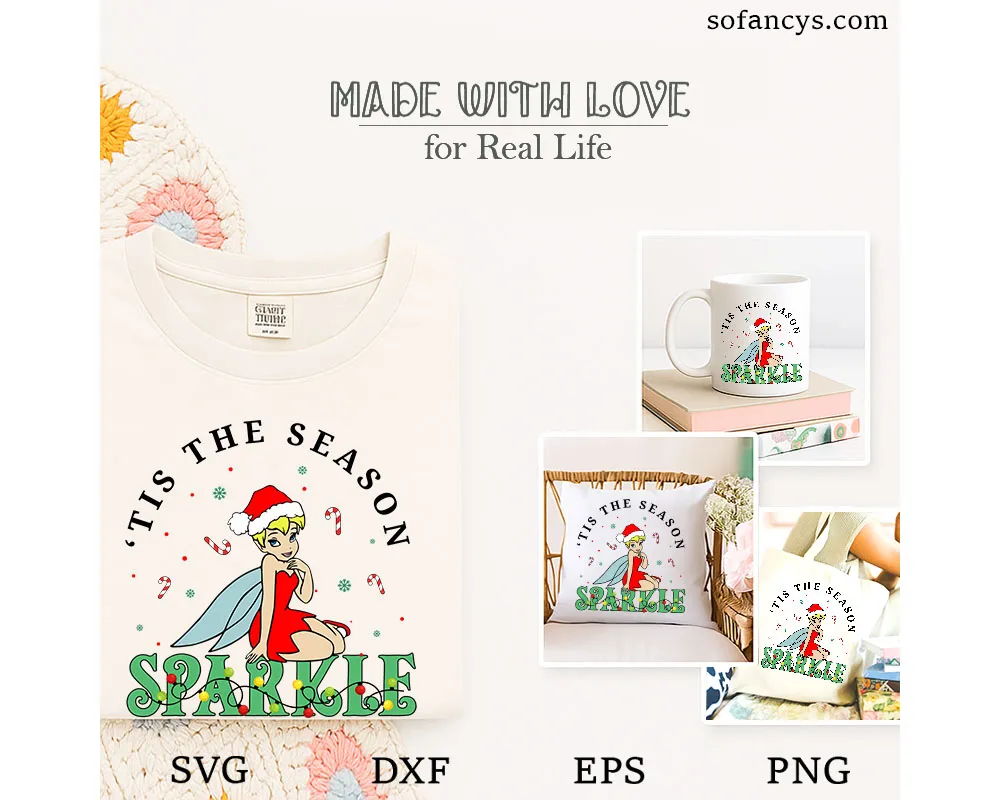 Sofancys presents the Magical Tinkerbell Christmas SVG – ’Tis The Season To Sparkle, a festive design featuring Tinkerbell in a red Santa dress surrounded by candy canes, snowflakes, and twinkling lights. The phrase “‘Tis The Season To Sparkle” adds extra holiday charm, perfect for Christmas shirts, mugs, and Cricut projects. Bring a sprinkle of fairy magic to your winter crafts!