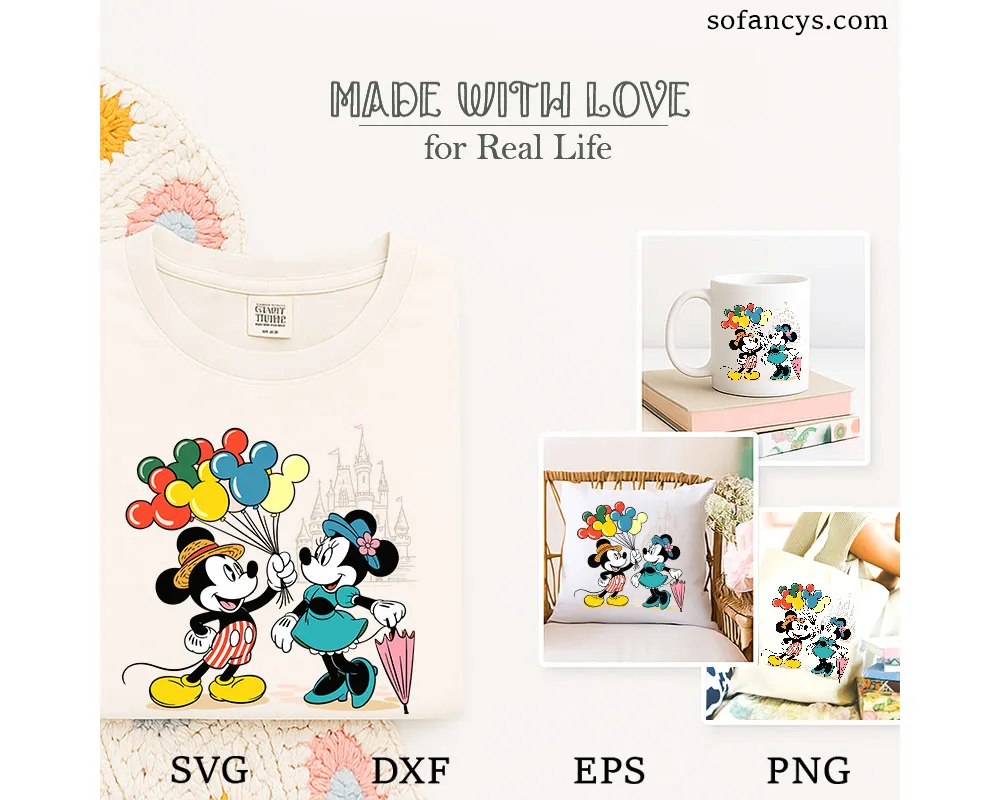 Mickey and Minnie Balloon SVG – Cute Disney Castle File