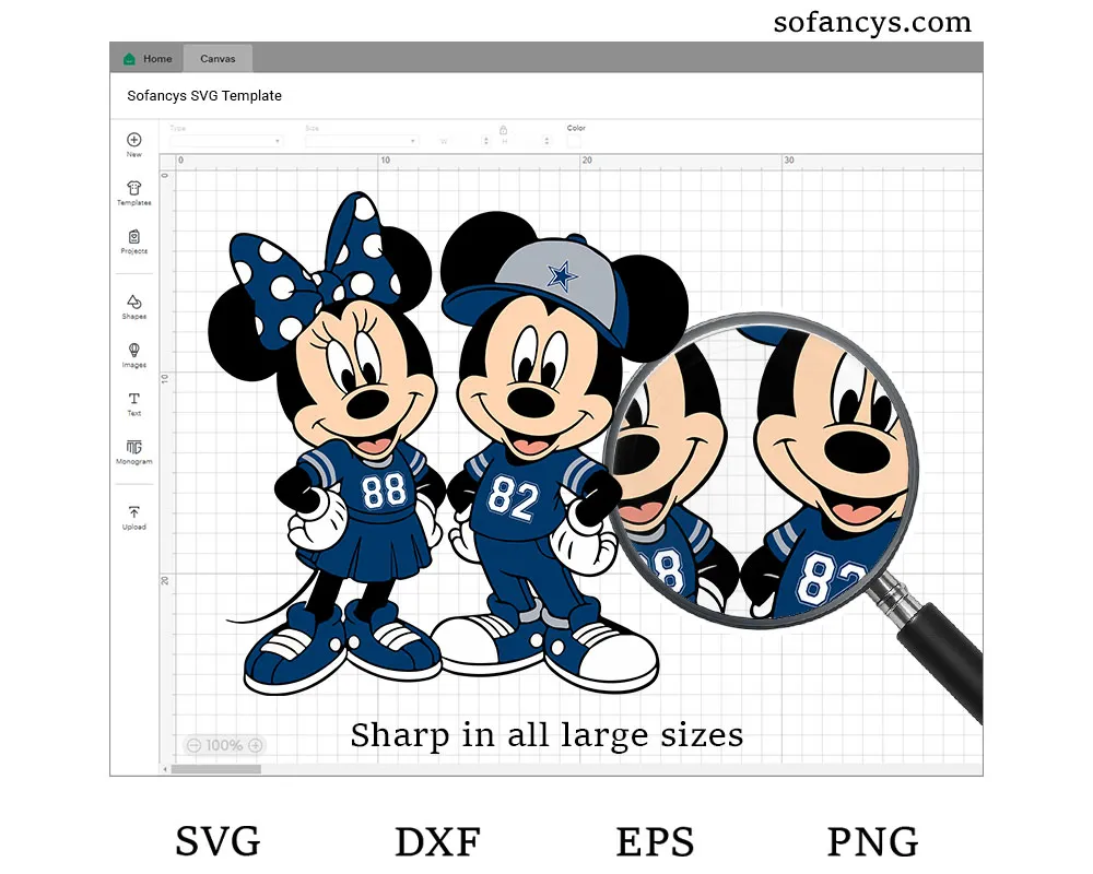 Mickey And Minnie Dallas Cowboys SVG – Disney Football Cut File, SVG DXF EPS PNG Files