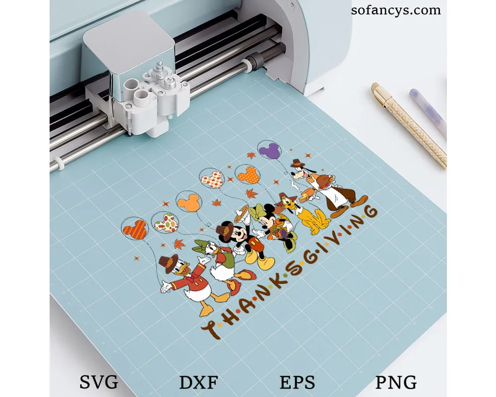 Mickey Friends Thanksgiving SVG – Cute Fall Dinner Cartoon File, SVG DXF EPS PNG Files