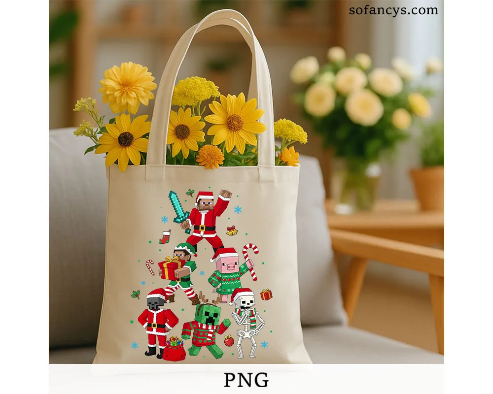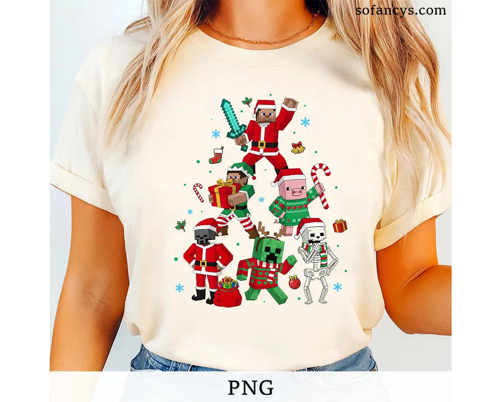 Minecraft Xmas Squad PNG – Funny Holiday Gamer Characters
