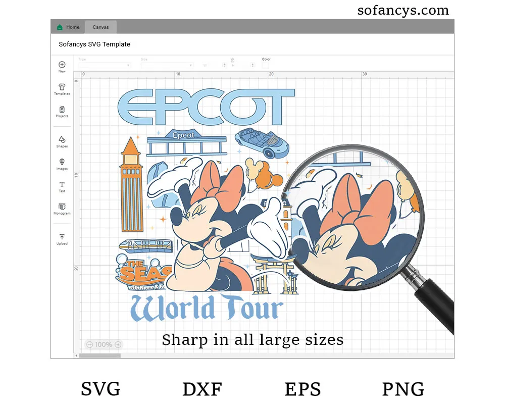 What you will get: Minnie Mouse EPCOT World Tour SVG.