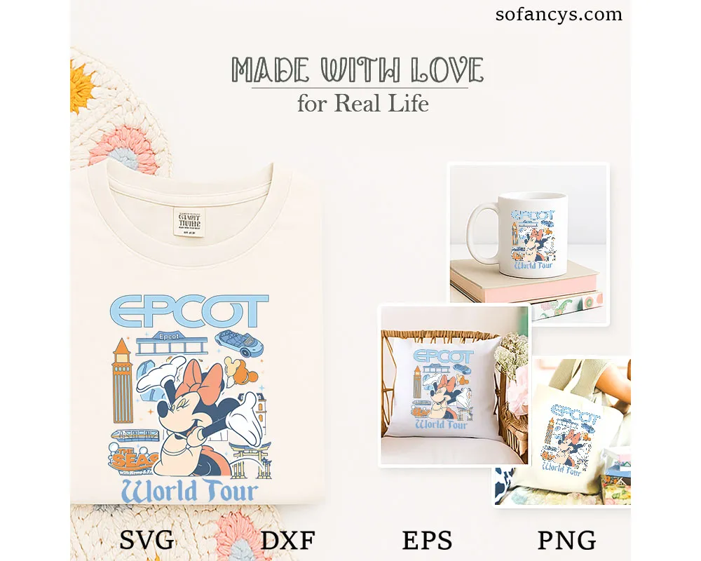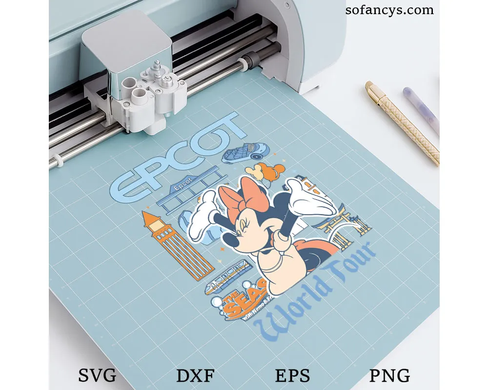 Minnie Mouse EPCOT World Tour SVG – Disney Travel Park Cut File, SVG DXF EPS PNG Files