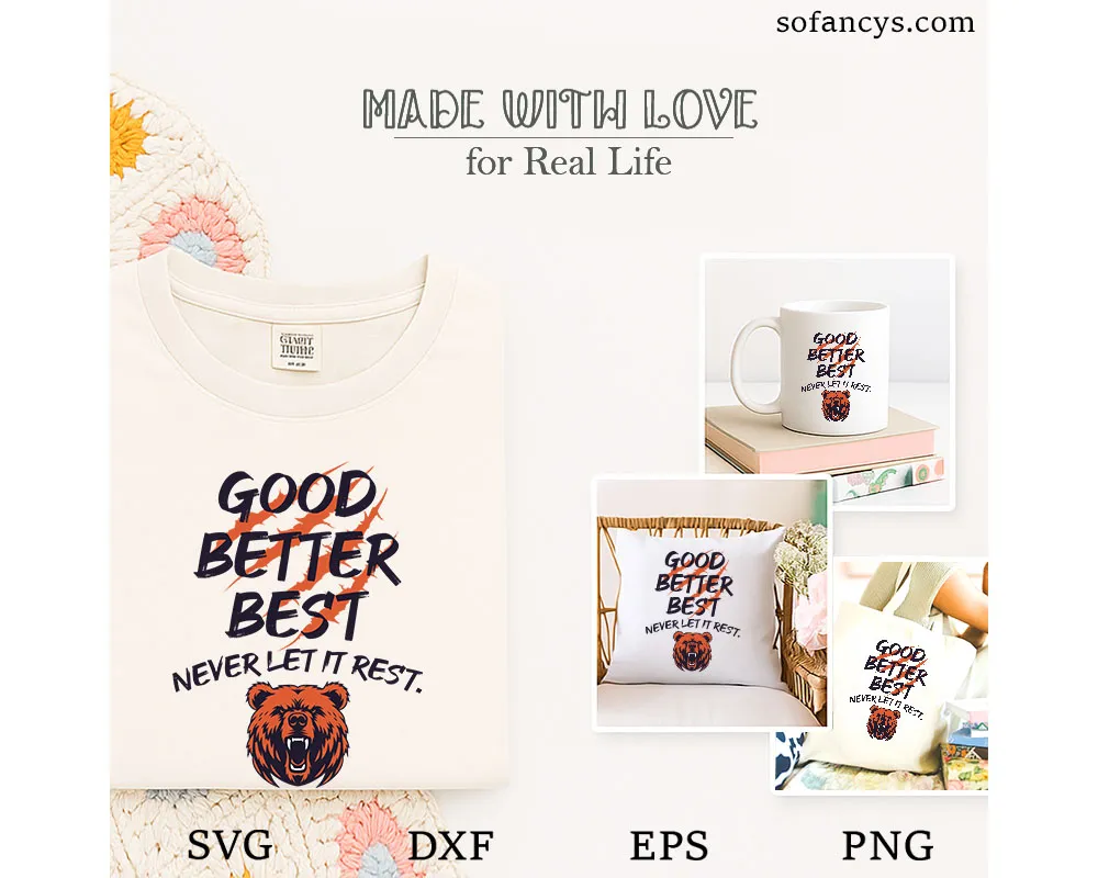 Motivation Bear Head SVG – Good Better Best Quote Design, SVG DXF EPS PNG Files