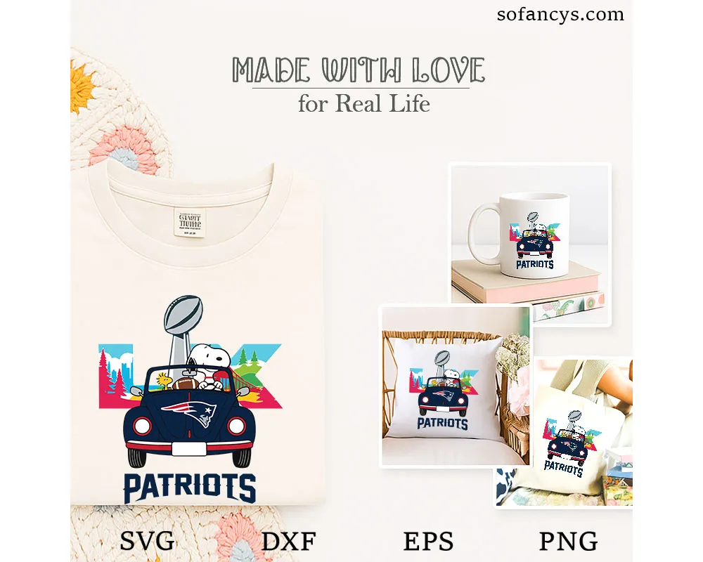 Sofancys proudly presents the New England Patriots Snoopy SVG – Super Bowl LX Cut File, featuring a fun football road-trip design with Snoopy and Woodstock celebrating Patriots pride. This creative artwork blends Super Bowl LX energy with a vintage car illustration, making it perfect for Cricut, Silhouette, and other cutting machines. Ideal for fan apparel, decals, shirts, and game-day crafts, this SVG set includes clean, high-quality files ready for personal projects or gifts for Patriots fans.