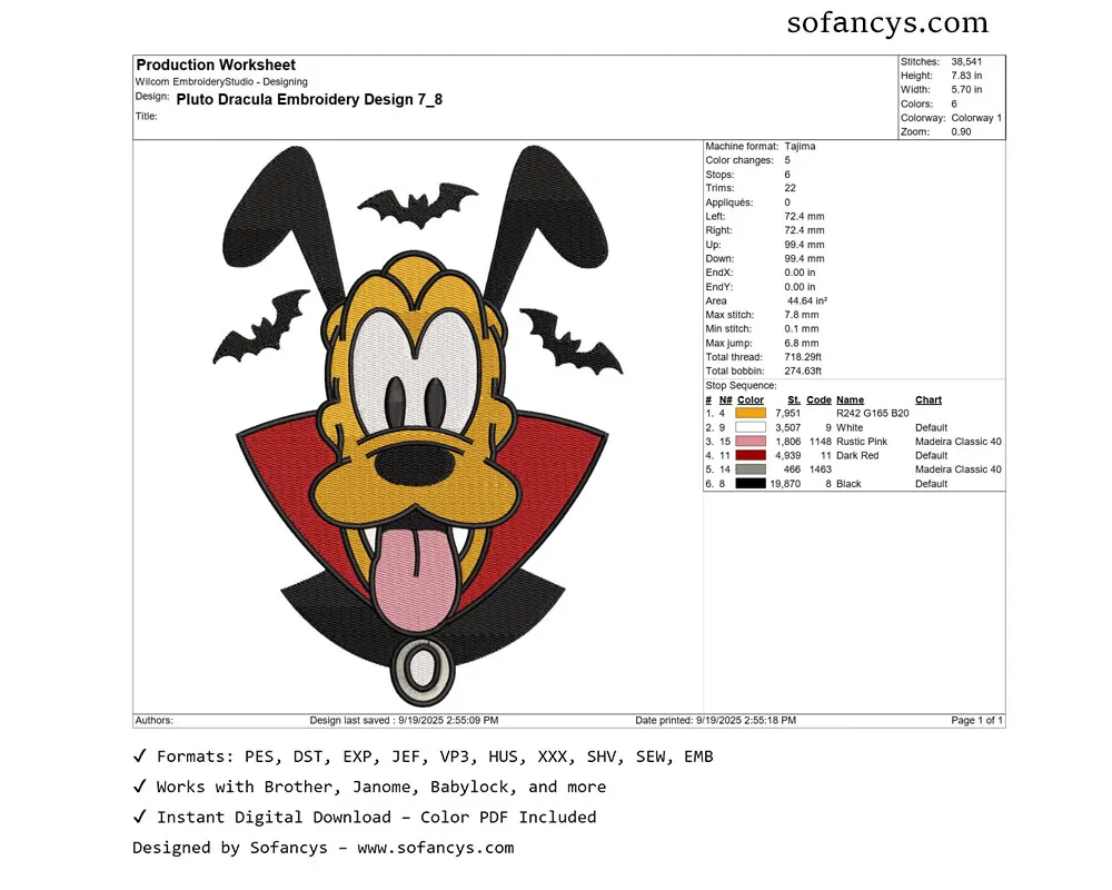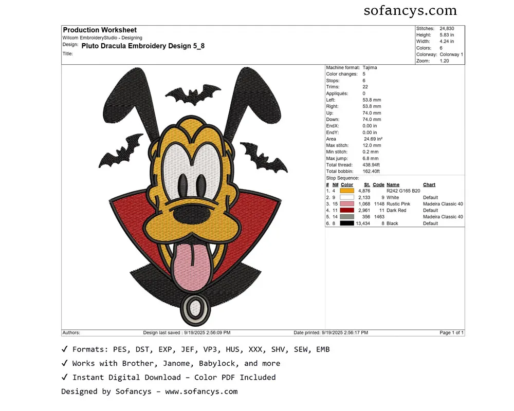 Pluto Dracula Embroidery Design – Disney Halloween Pattern