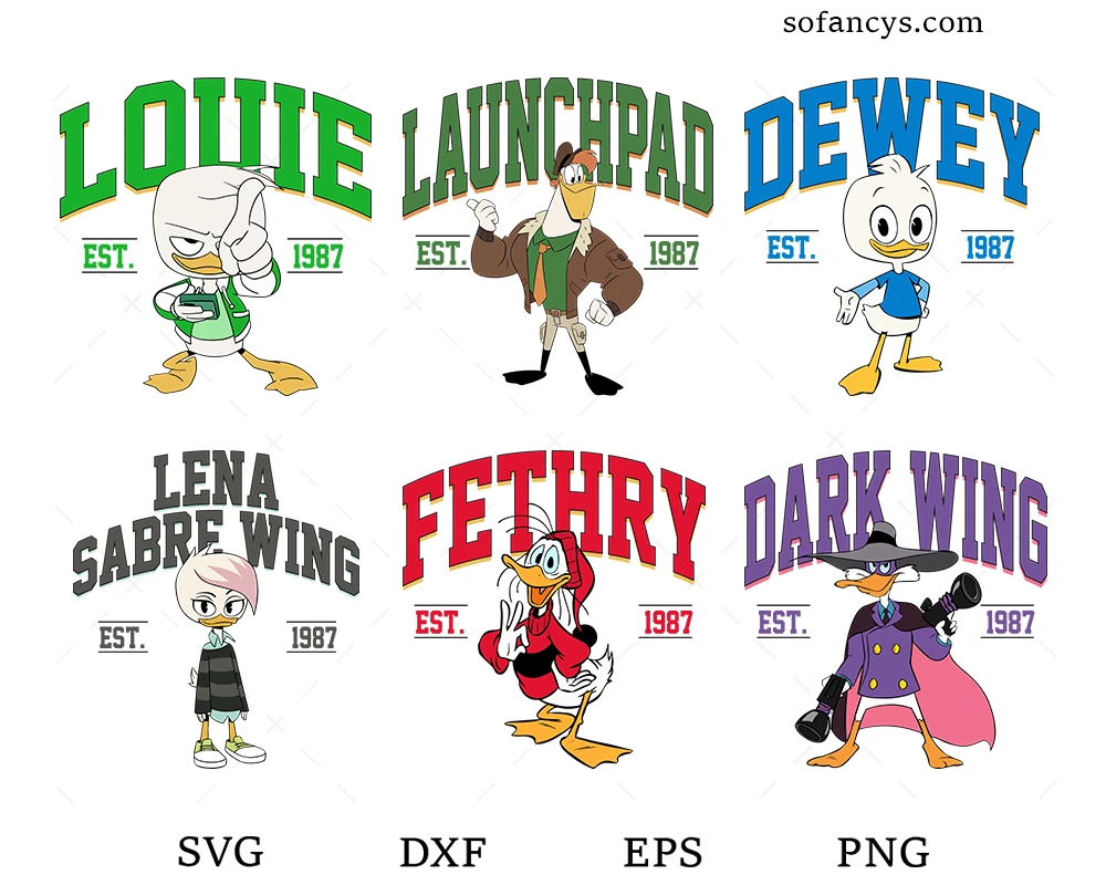 Retro DuckTales SVG Bundle – Classic Disney Cartoon Characters – SVG DXF EPS PNG Files