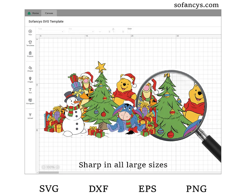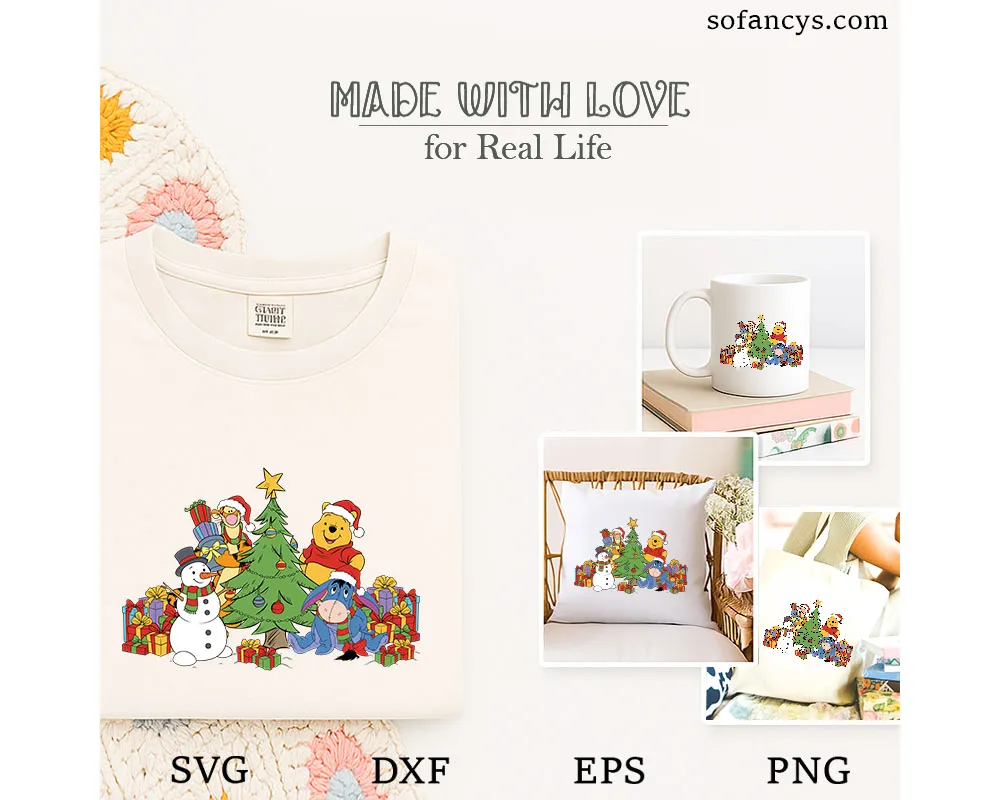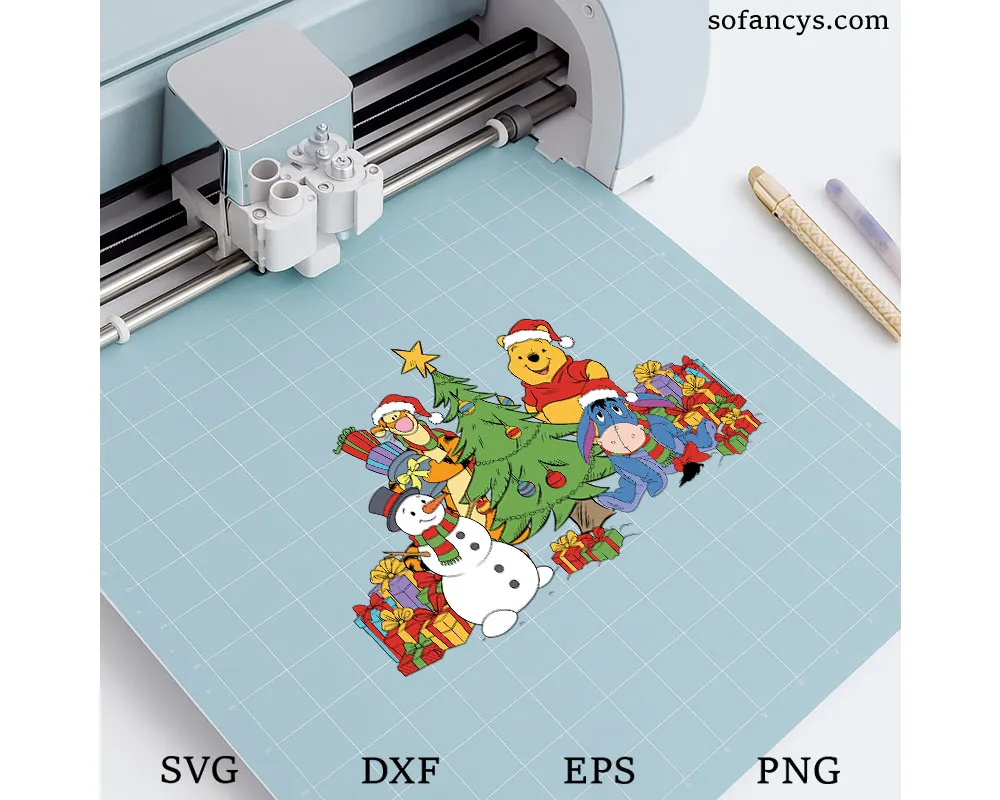 Retro Pooh Christmas SVG – Cute Holiday Tree & Friends Design, SVG DXF EPS PNG Files