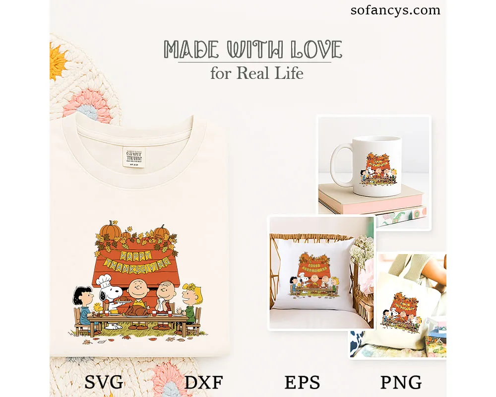 Snoopy Thanksgiving SVG – Peanuts Charlie Brown Fall Dinner , SVG DXF EPS PNG Files