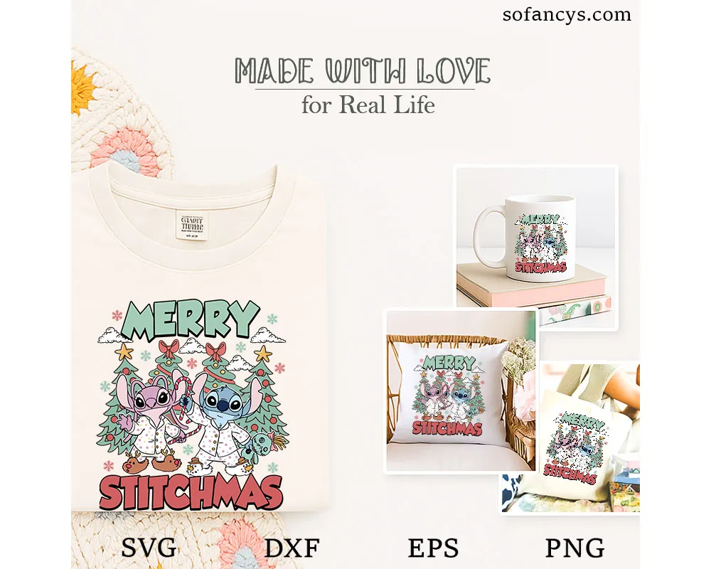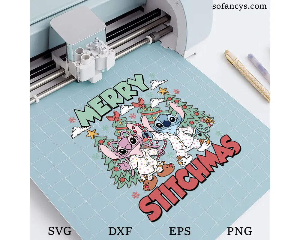 Sofancys proudly presents a joyful holiday illustration featuring Stitch And Angel Christmas SVG – Cute Holiday Cartoon Design, capturing playful winter vibes with adorable characters in festive pajamas. Surrounded by decorated Christmas trees, candy canes, snowflakes, and cheerful details, this design brings warmth and fun to any seasonal project. Perfect for shirts, pajamas, gifts, mugs, stickers, or DIY crafts, it’s ideal for fans who love cute cartoon art and cozy Christmas aesthetics. High-quality artwork ensures crisp results for both personal and creative holiday uses.