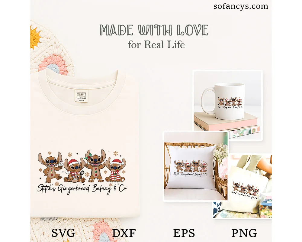 Sofancys brings festive cheer with Stitch Gingerbread Christmas SVG – Cute Baking Holiday Design, featuring Stitch transformed into adorable gingerbread bakers surrounded by cozy holiday details. This playful design captures the joy of Christmas baking, sweet treats, and warm seasonal vibes in a cute cartoon style. Perfect for shirts, mugs, stickers, cards, and DIY holiday crafts, this high-quality SVG is easy to cut and print. A delightful choice for fans who love Stitch, Christmas desserts, and charming handmade holiday creations.
