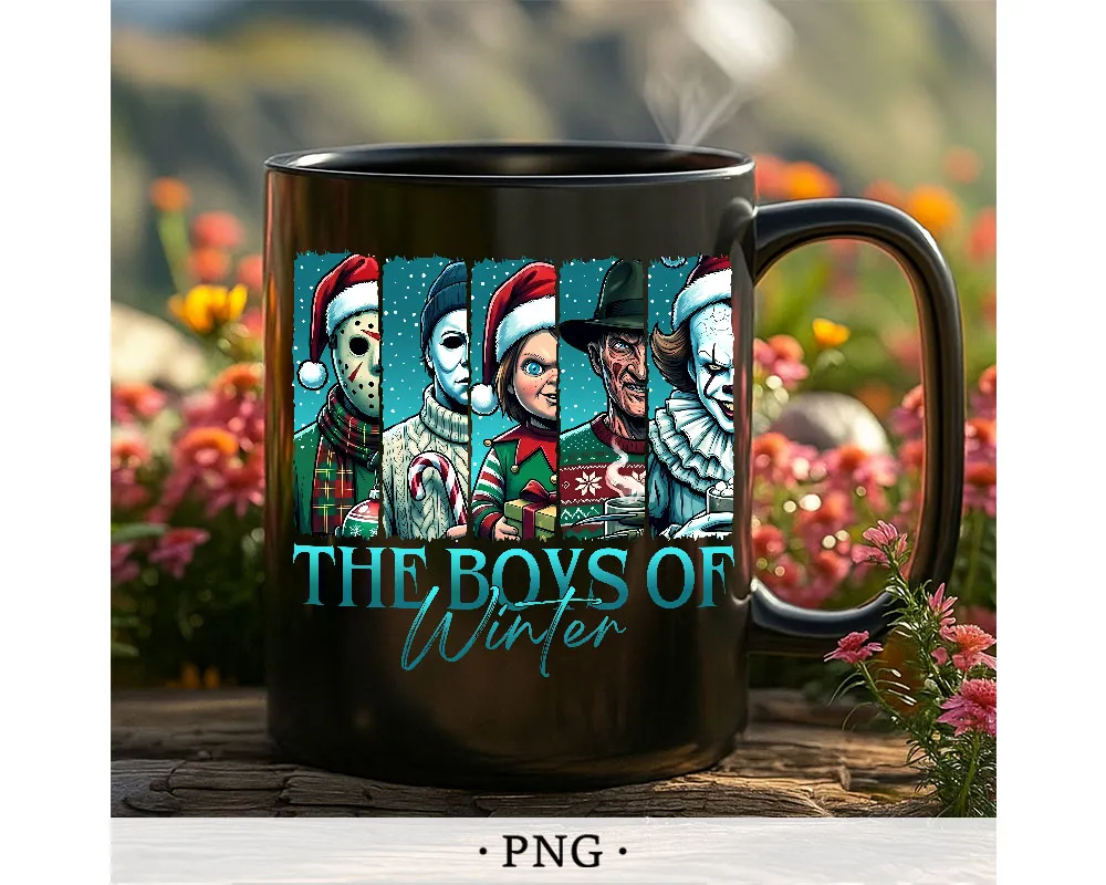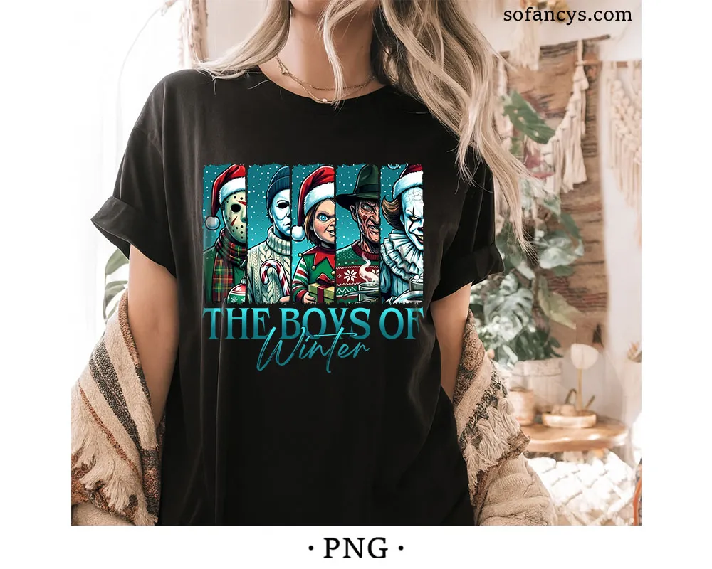 Sofancys proudly presents a bold and chilling holiday artwork inspired by classic horror cinema. The Boys of Winter PNG – Horror Movie Christmas Characters features iconic villains reimagined in festive winter outfits, blending dark aesthetics with Christmas spirit. This high-quality PNG design is perfect for sublimation, T-shirts, hoodies, posters, and seasonal décor projects. Crisp details, dramatic colors, and a unique horror-meets-holiday vibe make it ideal for fans who love spooky Christmas art and standout winter designs.