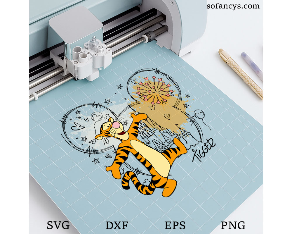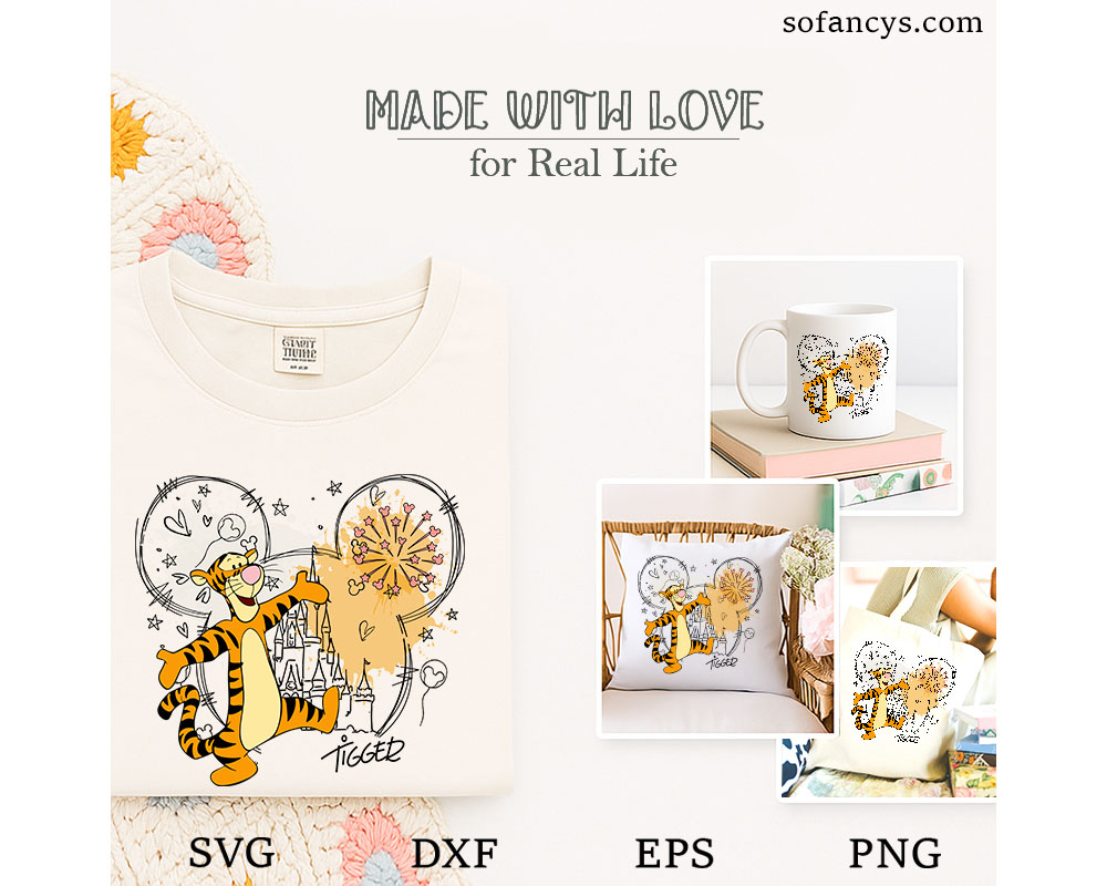 Sofancys proudly presents a joyful watercolor illustration featuring Tigger leaping happily inside a Mickey head silhouette with a magical castle and sparkling fireworks. This playful artwork combines energetic movement, soft watercolor splashes, and whimsical doodle details to create a fun Disney-inspired look. Ideal for family trip shirts, matching outfits, Cricut projects, and custom gifts, Tigger Disney Mickey Head SVG – Watercolor Castle Design is perfect for cutting, printing, and sublimation on apparel, mugs, stickers, posters, and keepsakes.