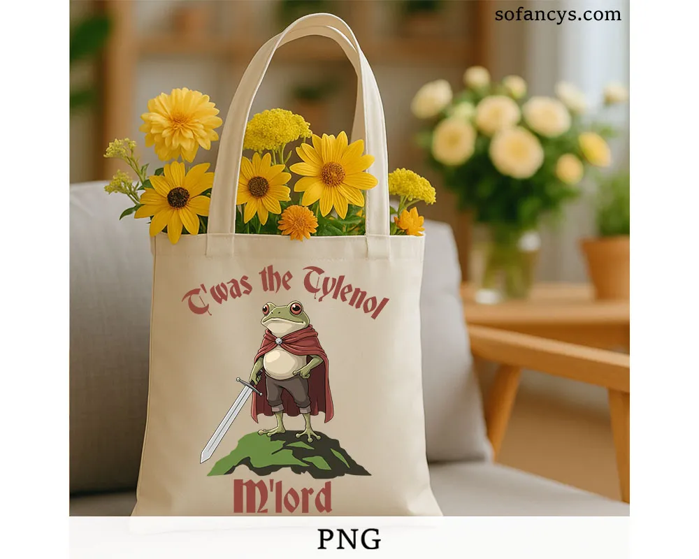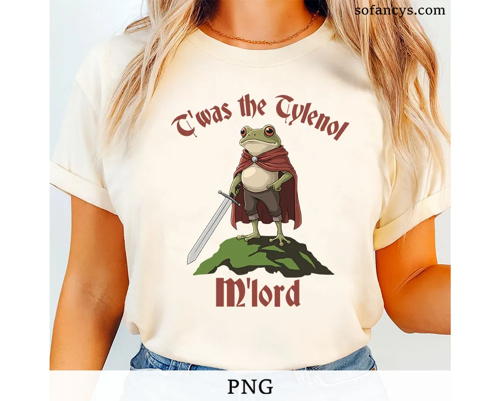 Sofancys presents a humorous medieval-style illustration that blends fantasy charm with modern meme culture. Twas The Tylenol M’lord PNG – Funny Medieval Frog Meme Design showcases a noble frog warrior standing proudly with a sword, styled like a classic fantasy hero. Moreover, the witty phrase adds instant comedic appeal. In addition, the detailed artwork and clean lines ensure excellent print quality. Therefore, this design fits perfectly on shirts, stickers, posters, and gifts for meme lovers. Overall, it delivers humor, fantasy vibes, and standout character appeal.