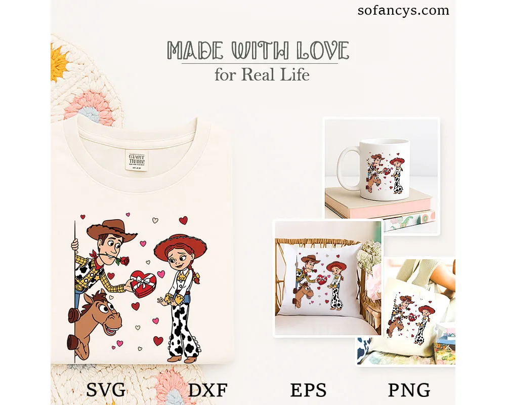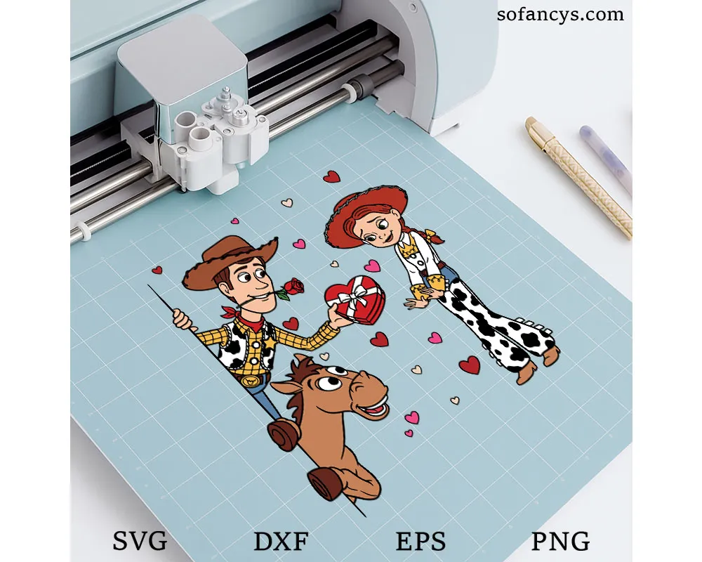 Woody And Jessie Valentine SVG – Cartoon Couple Love File, SVG DXF EPS PNG Files
