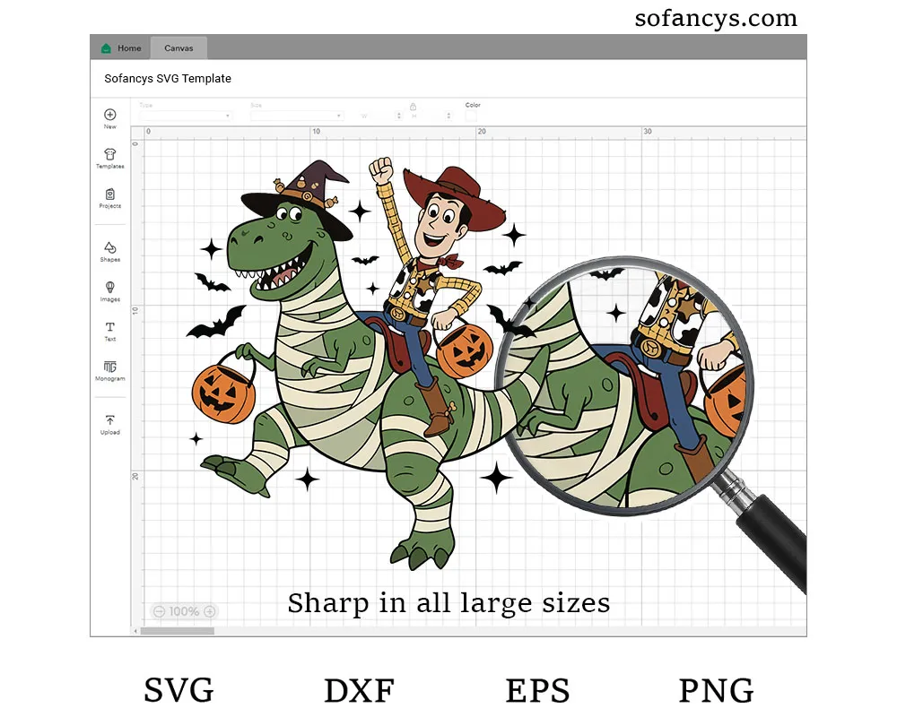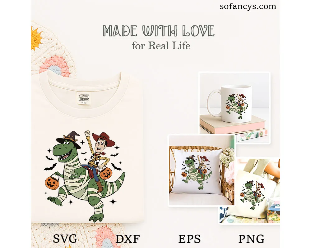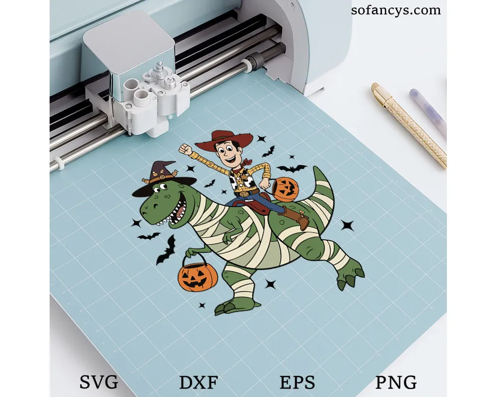 Sofancys presents the Woody and Rex Spooky SVG – Toy Story Halloween Design, a fun Halloween design featuring Woody riding a mummy-wrapped Rex with pumpkins, bats, and stars. This playful artwork captures the spooky yet cheerful Halloween spirit, perfect for themed shirts, tote bags, and party crafts. The Woody and Rex Spooky SVG combines Disney charm and Halloween fun, making it ideal for crafters who love unique, character-inspired holiday designs full of adventure and festive flair.